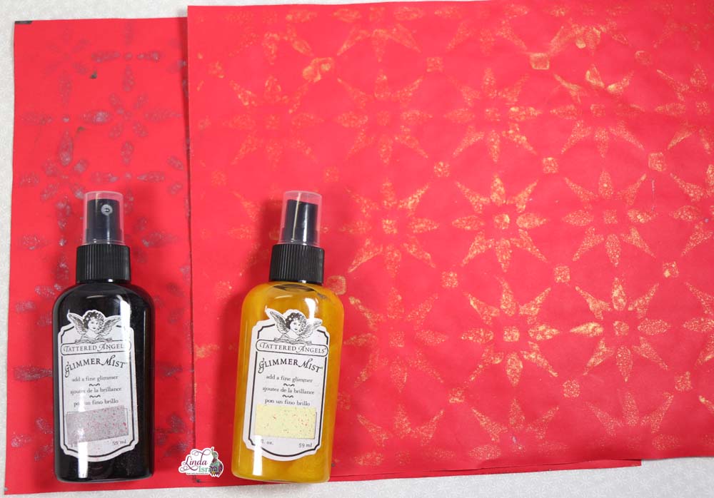 Here is a list of the colors of Tattered Angels Glimmer Mist I used today: