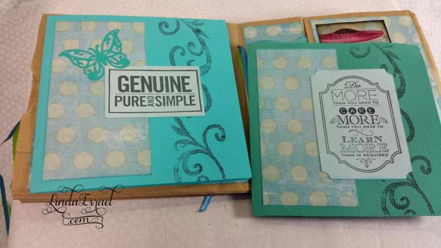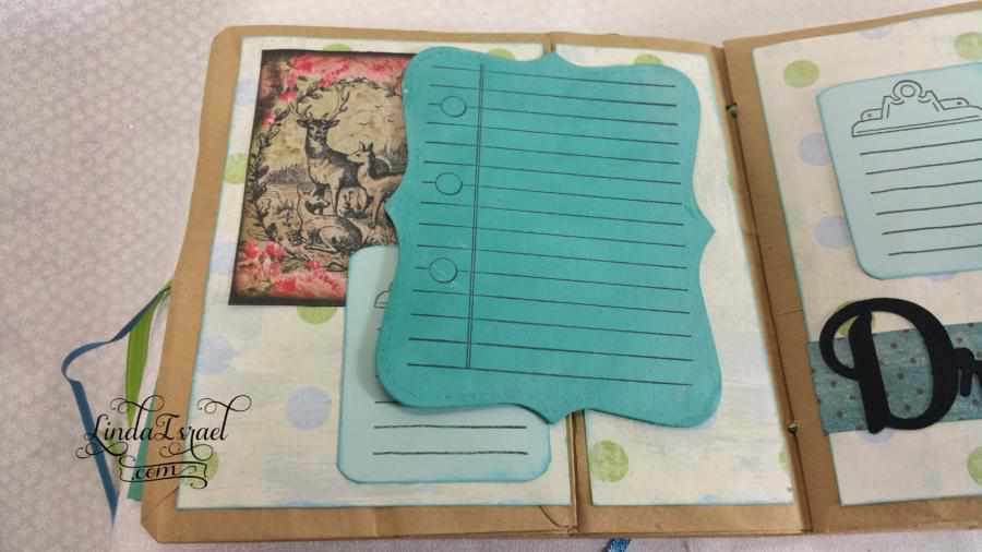 A belly band is a great way to add something thick to a journal. I made the little folio a while back and thought it would be a pretty addition to this junk journal. It is full of little items to use for journaling.