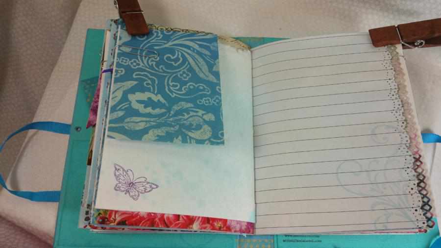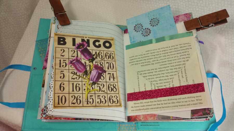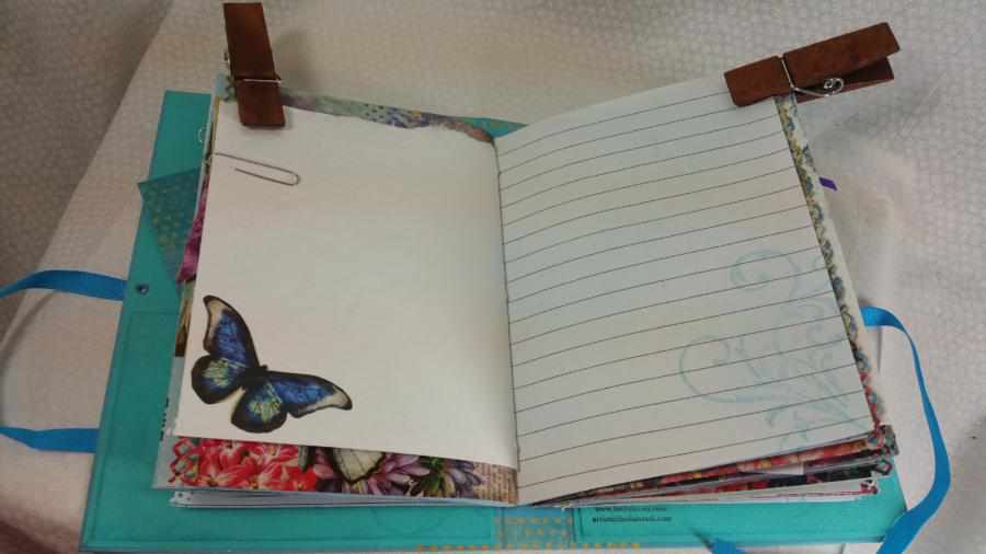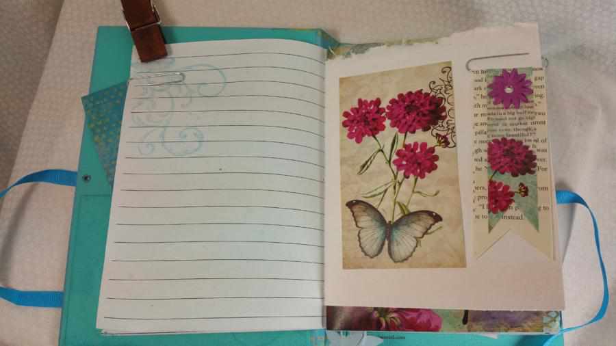 There are six embellished or altered paper clips in this journal. These were embellished with paper flowers and rhinestones.