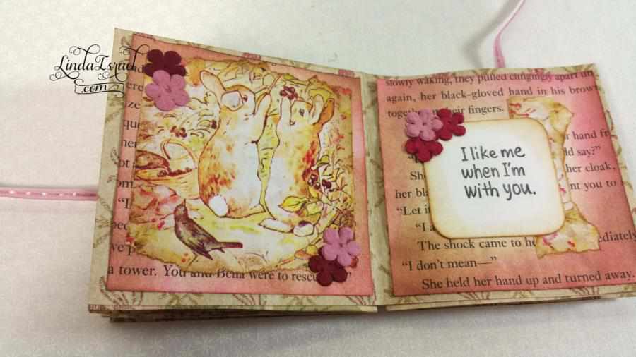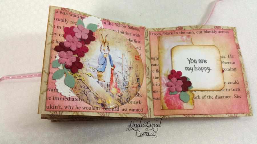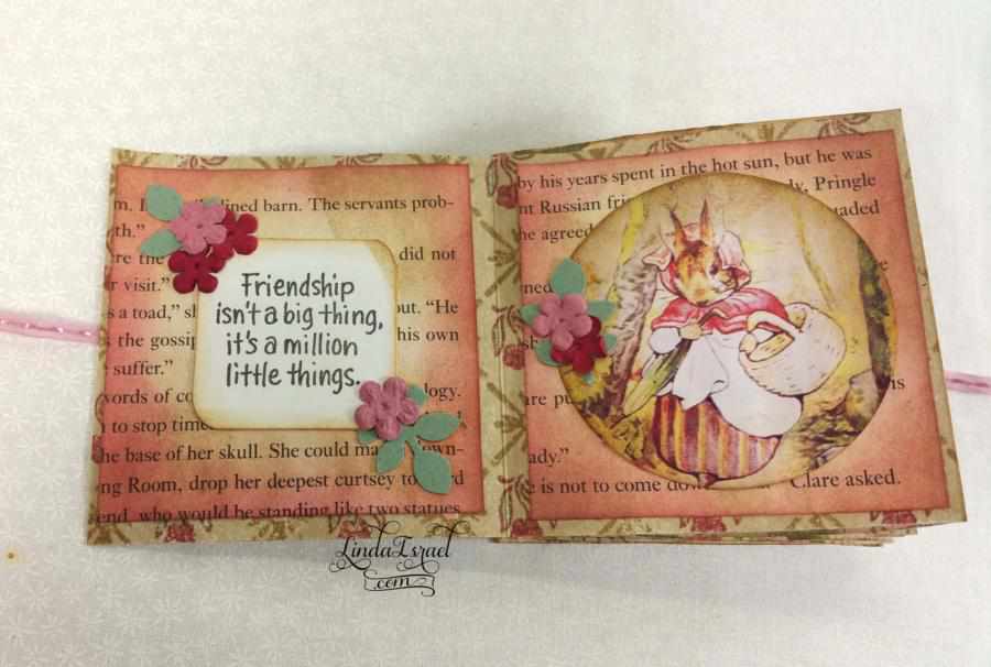 This tiny book measures 3 in. x 3 in. when completed. There are several tutorials out there on how to make this tiny book. The video shows my version of How to make a Handmade Tiny Peter Rabbit – Friendship Book.