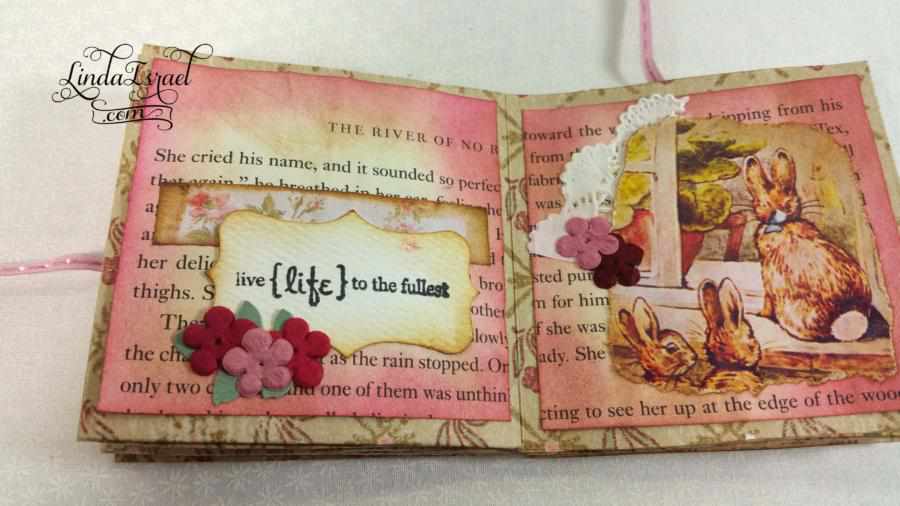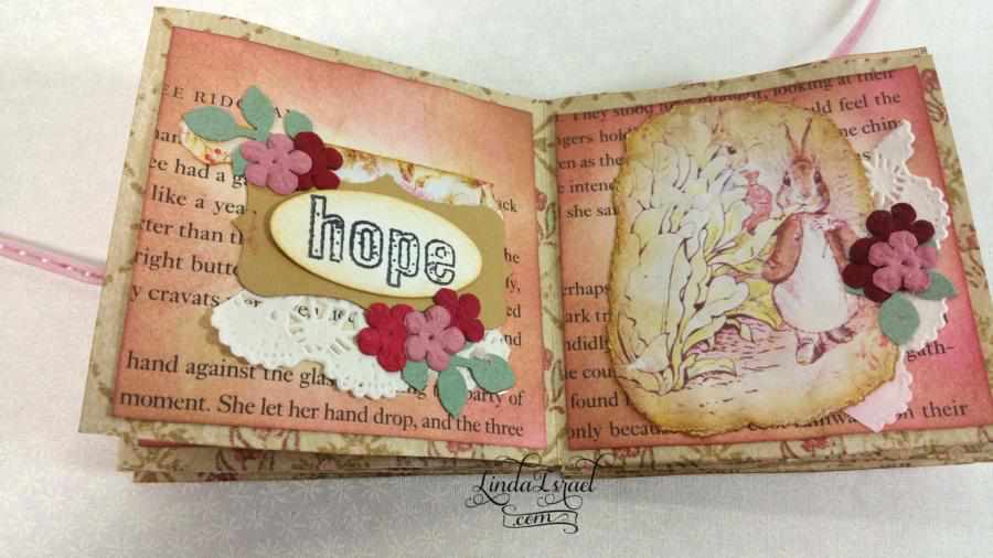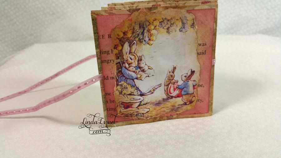 Tiny books are so much fun. Here is a fun project: How to make a Handmade Tiny Peter Rabbit – Friendship Book. Using Calico Collage Digital images, Peter Rabbit, Stamps, Prima Flowers, Scraps of paper, Tattered Angels Glimmer Mists and Tim Holtz Distressed Ink.