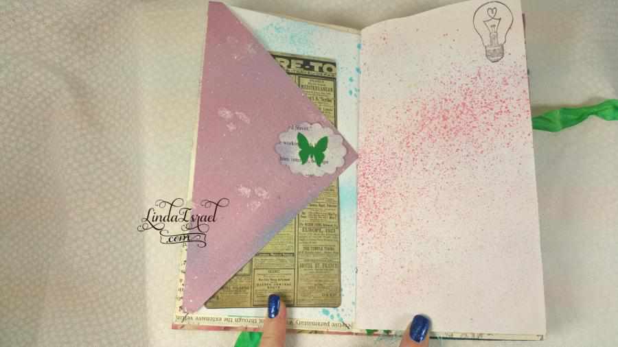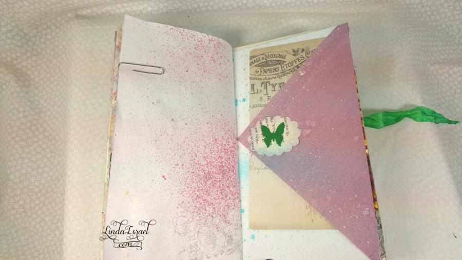 It’s a new style a Fairy Forest Travelers Notebook Junk Journal that I made today. This is a notebook that can be put inside a Travelers Notebook cover or it can be used just as it is, your choice. I have tested the size and it fits inside the Jane Davenport travelers notebook cover.