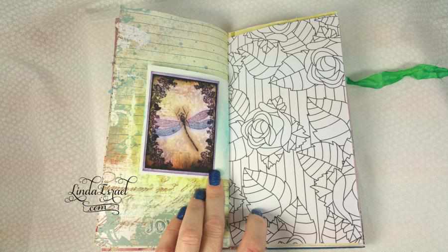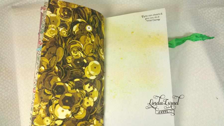 This journal has a mix of papers and techniques that I decided to try out. There are so many yummy papers in this journal, I can’t pick out my favorite but I do love the sequin paper a lot and the coloring book page was a good one too.