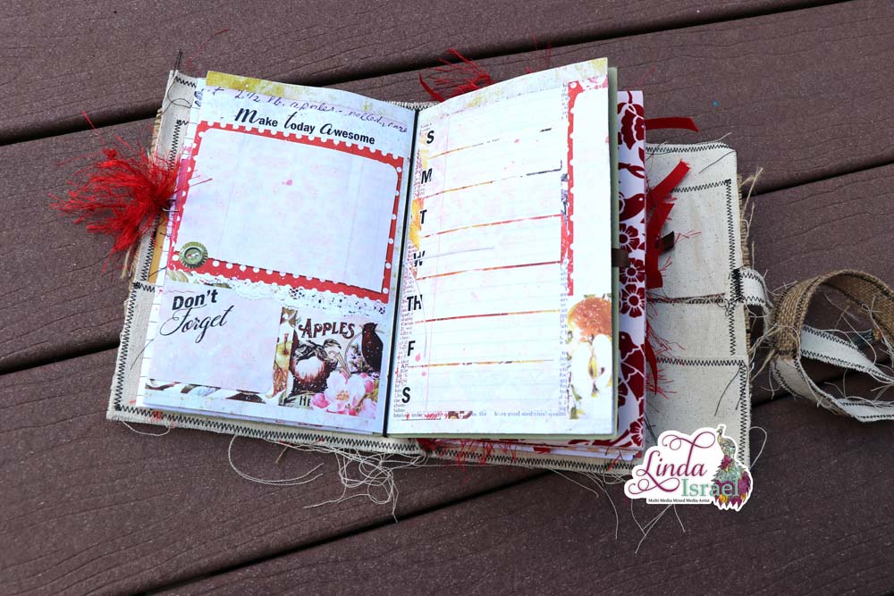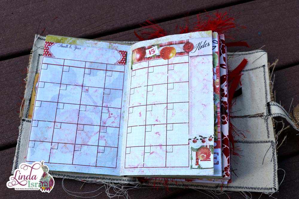The first insert in this Apple Spice Junk Journal Flip Through is a one month planner. The first page flips out and you can write all kinds of notes on the back or in the boxes on the front.