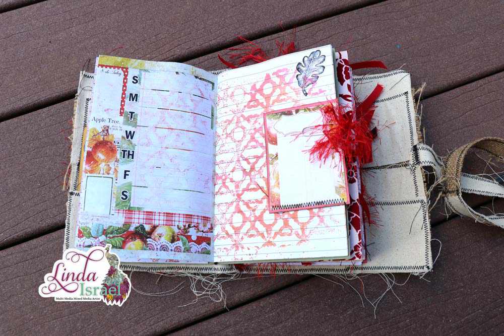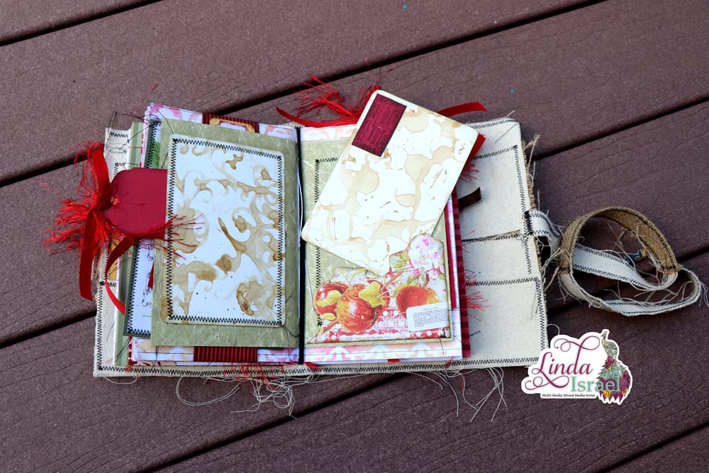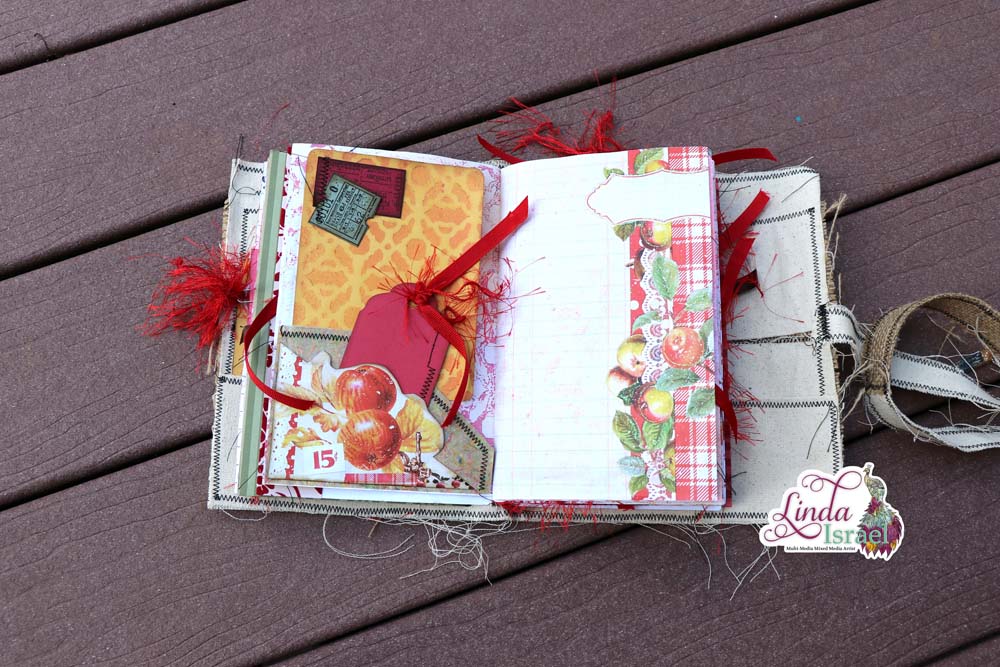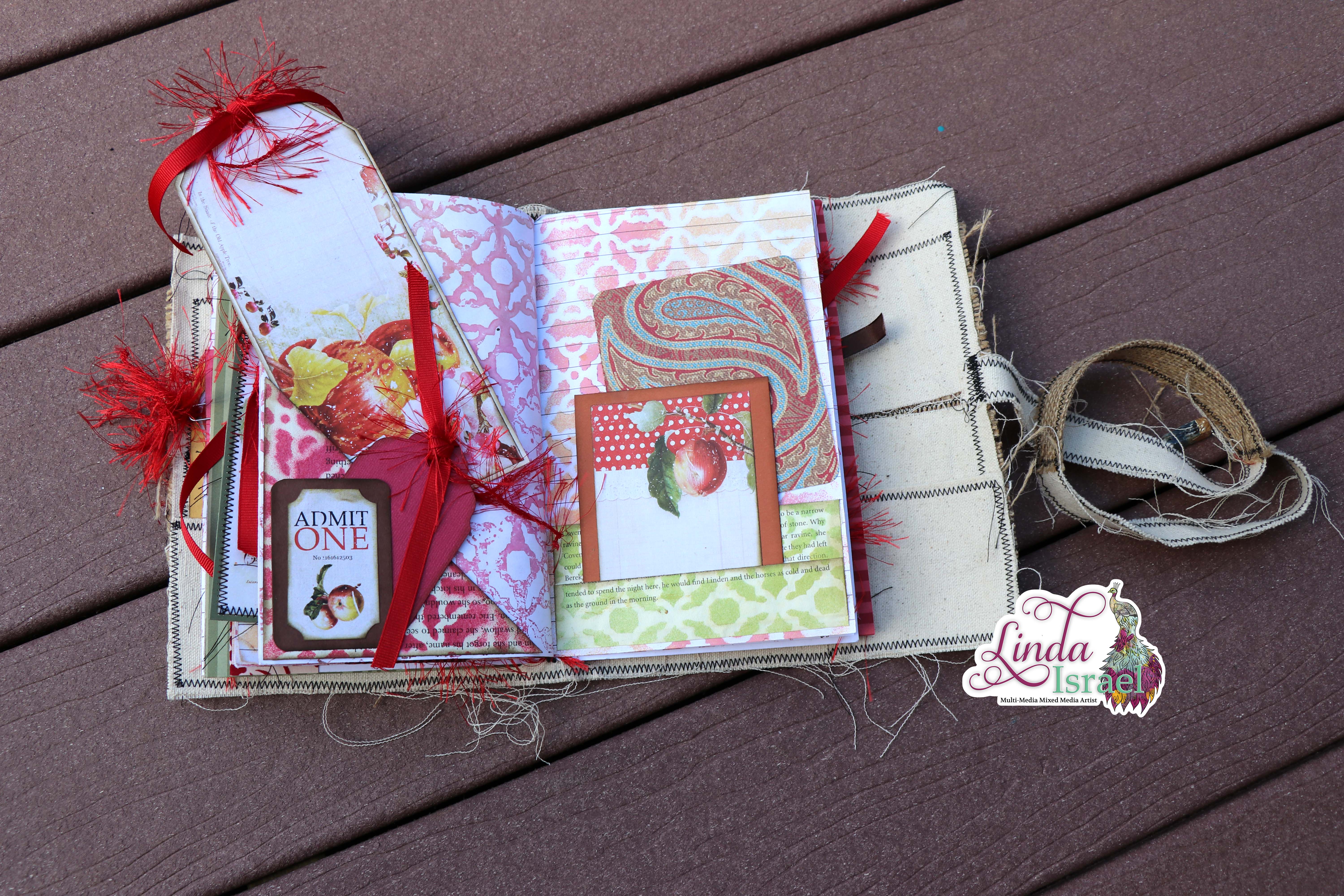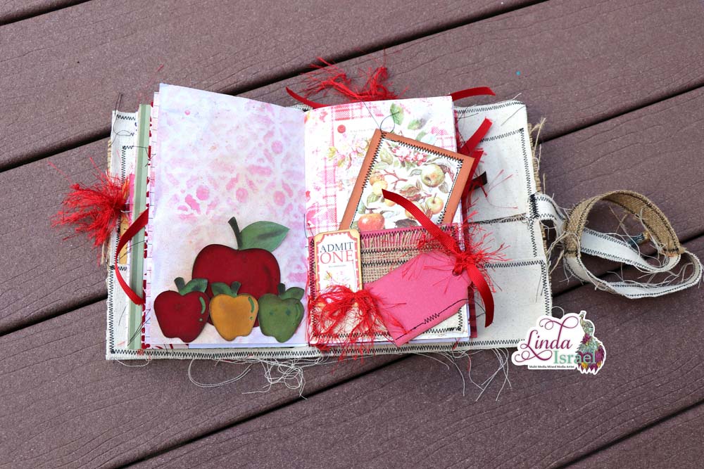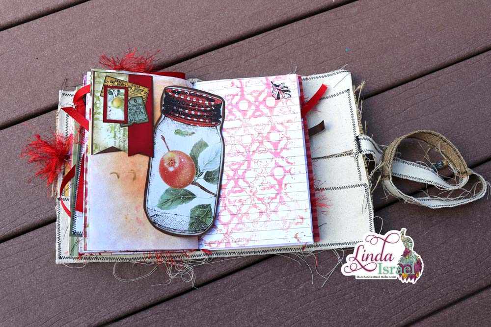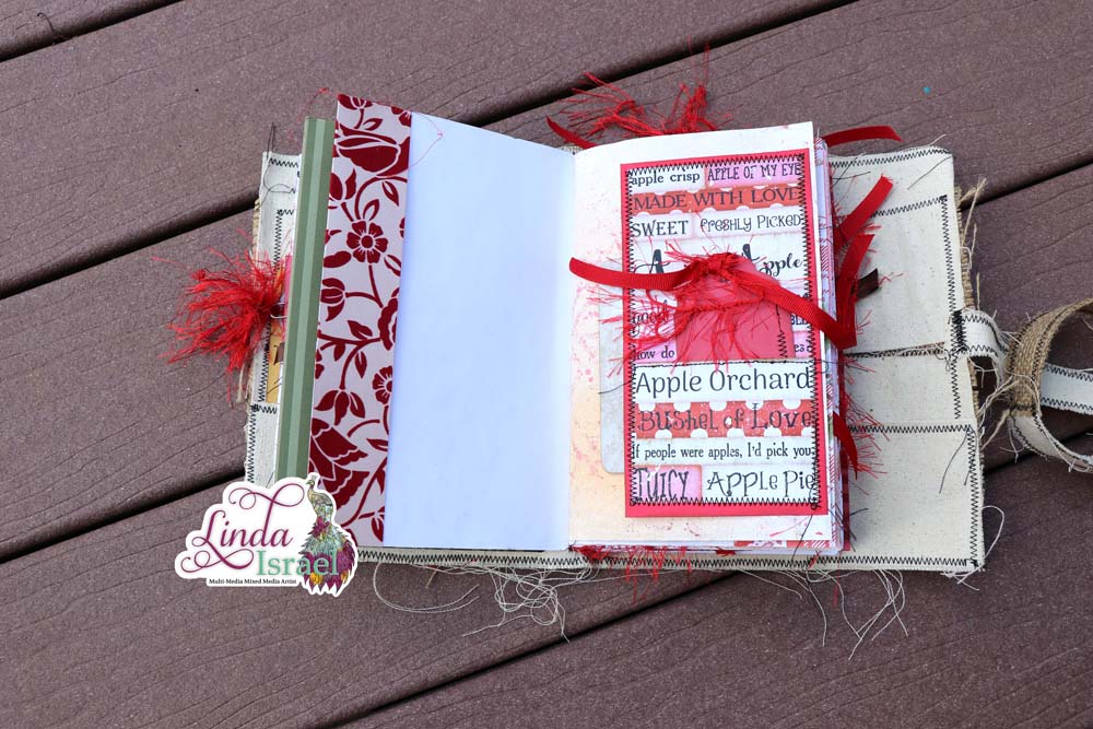 The Apple Spice Junk Journal measures 8.25 x 6 inch Junk Journal with a total of 36 pages. Three journal inserts that can be removed from the cover. This journal will hold four inserts. The journal is for sale and listed in my store.