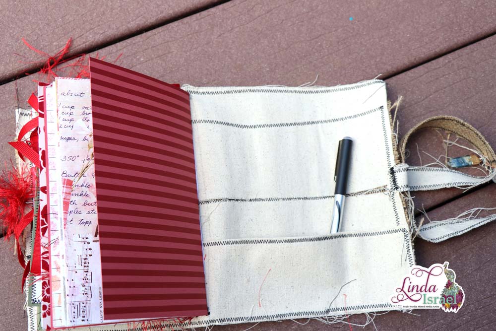 By adding journal cards to the handmade paper I was able to add additional writing space and a pocket.