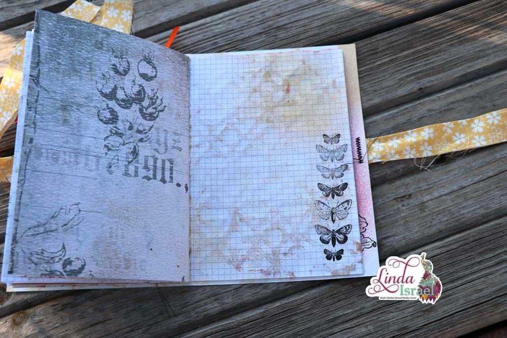 The grungy pages with the sprays and stamping make me happy. This is one of those journals that you can sit and pet.