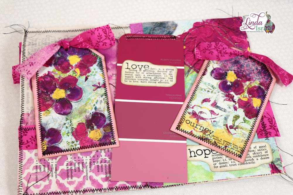 Because of the Violet Junk Journal Page Tutorial and the other tutorials for the rainbow, I hope it inspires you to create. Try new things. Look for cool items to add to your journal. Who would have thought that paint chips would be a pretty element? Couldn’t you see making a journal page that was all about the new baby room and the color pallet was chosen? What about a wedding, showing the theme of colors?