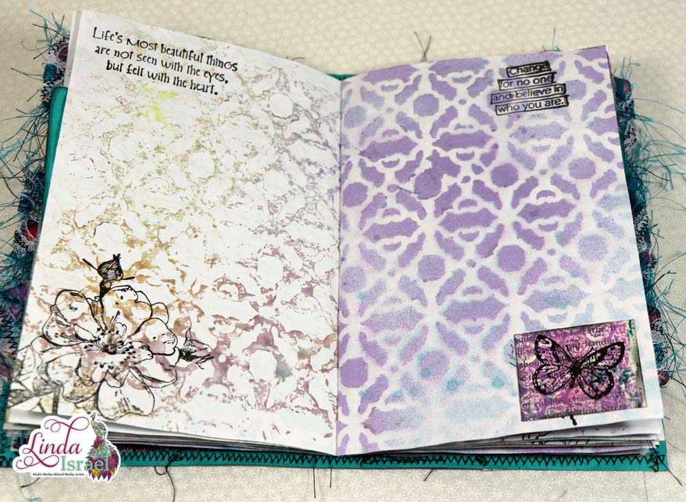 The colors in this Gel Print Junk Journal are amazing! This journal encourages you to write in it daily.