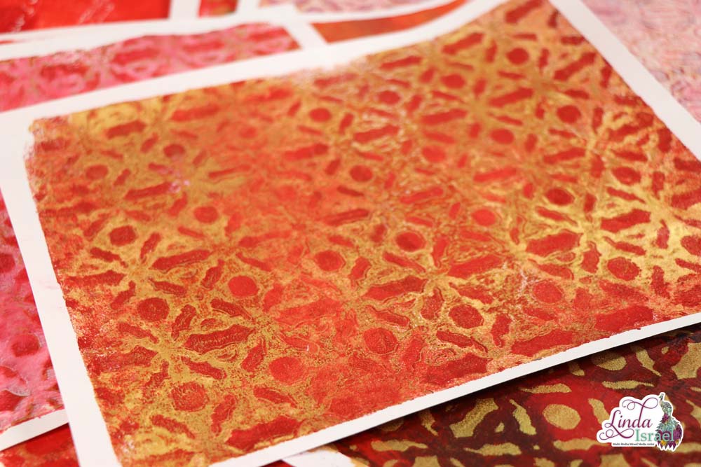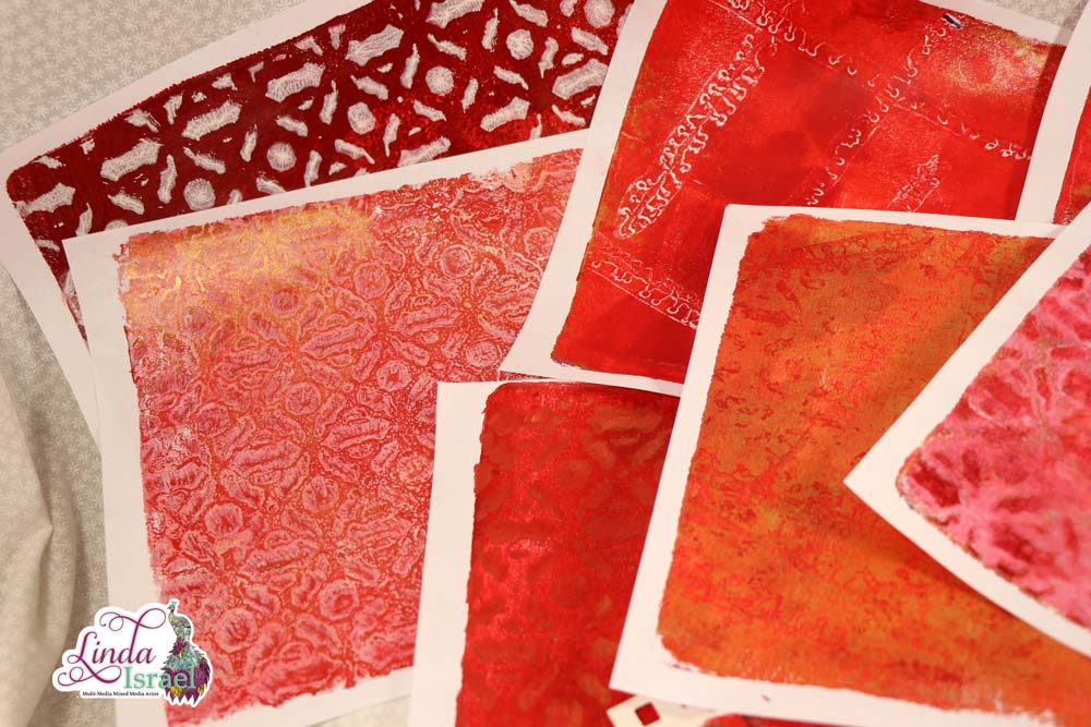 Taking the time for Red and Gold Gel Printing Play is so much fun. Don’t think about how it will turn out just play. What is fun about gel printing you can do the same thing and get different results each time.