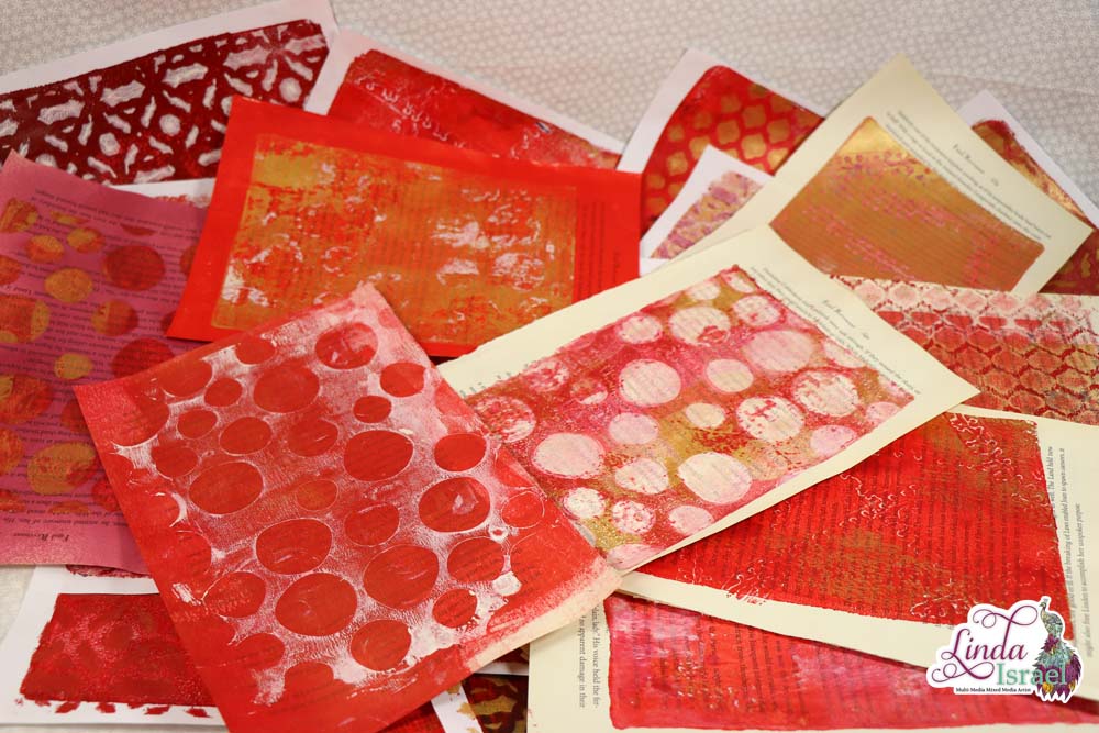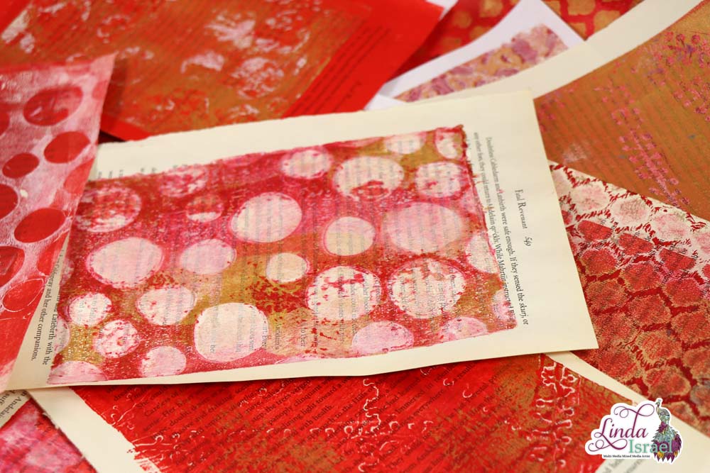 One of my favorite things to do is grab a book and rip the pages out and use those on the gel press. The paper turns out so beautiful.