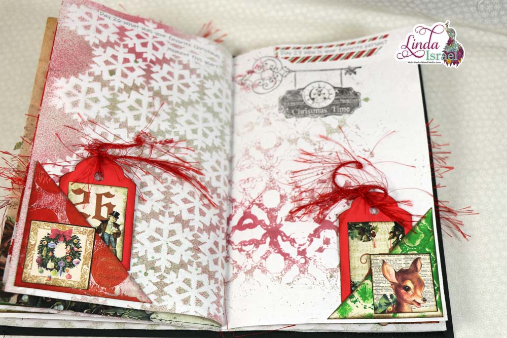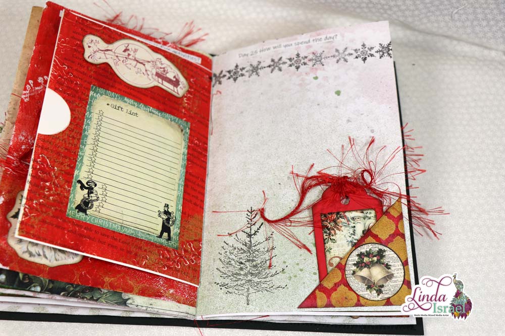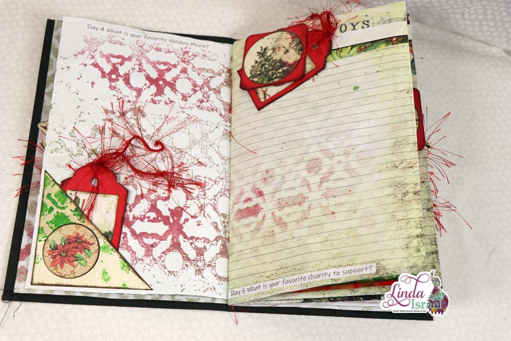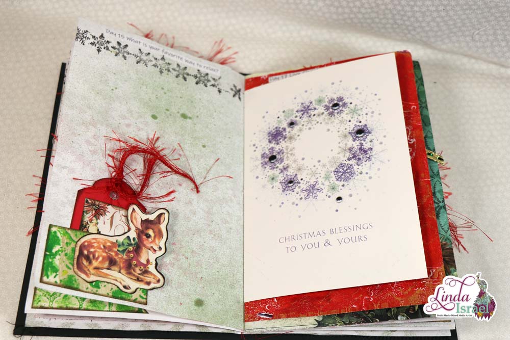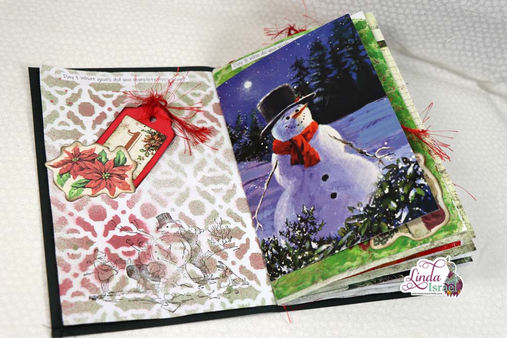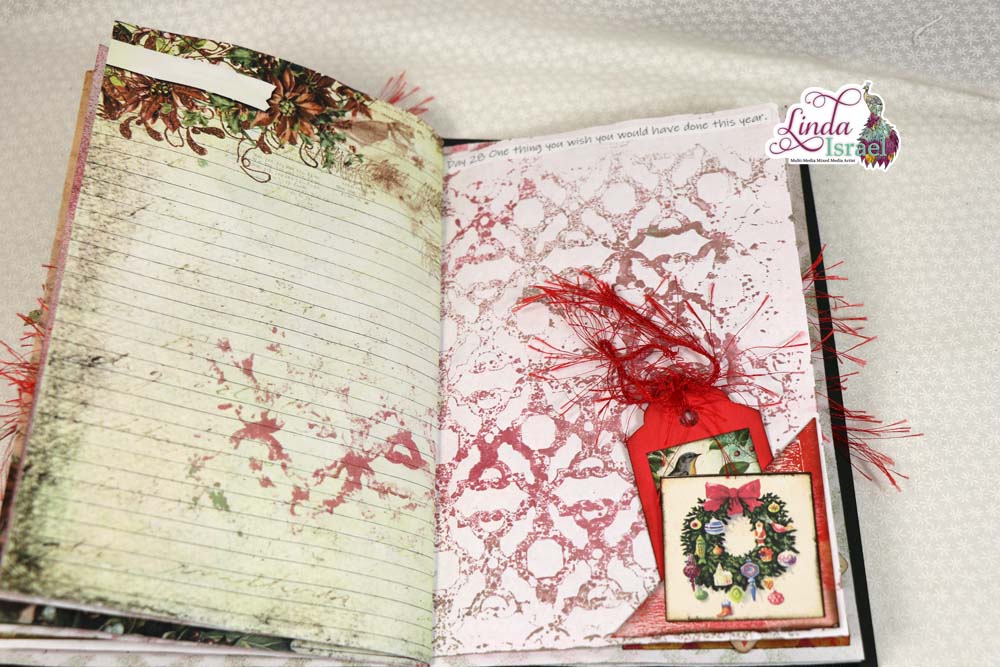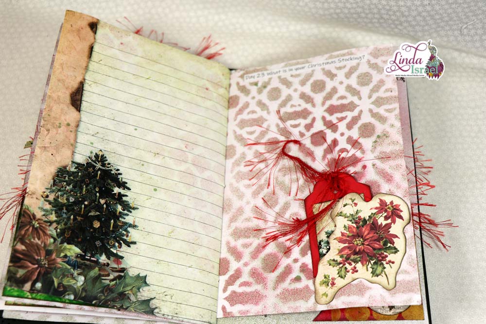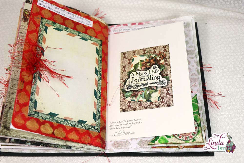A Merry Little 31 Days of Journaling will kick off December 2018. On November 26th, I made a junk journal live on YouTube. Today I’m sharing the photos of the finished journal and a list of the supplies that were used to create the journal.