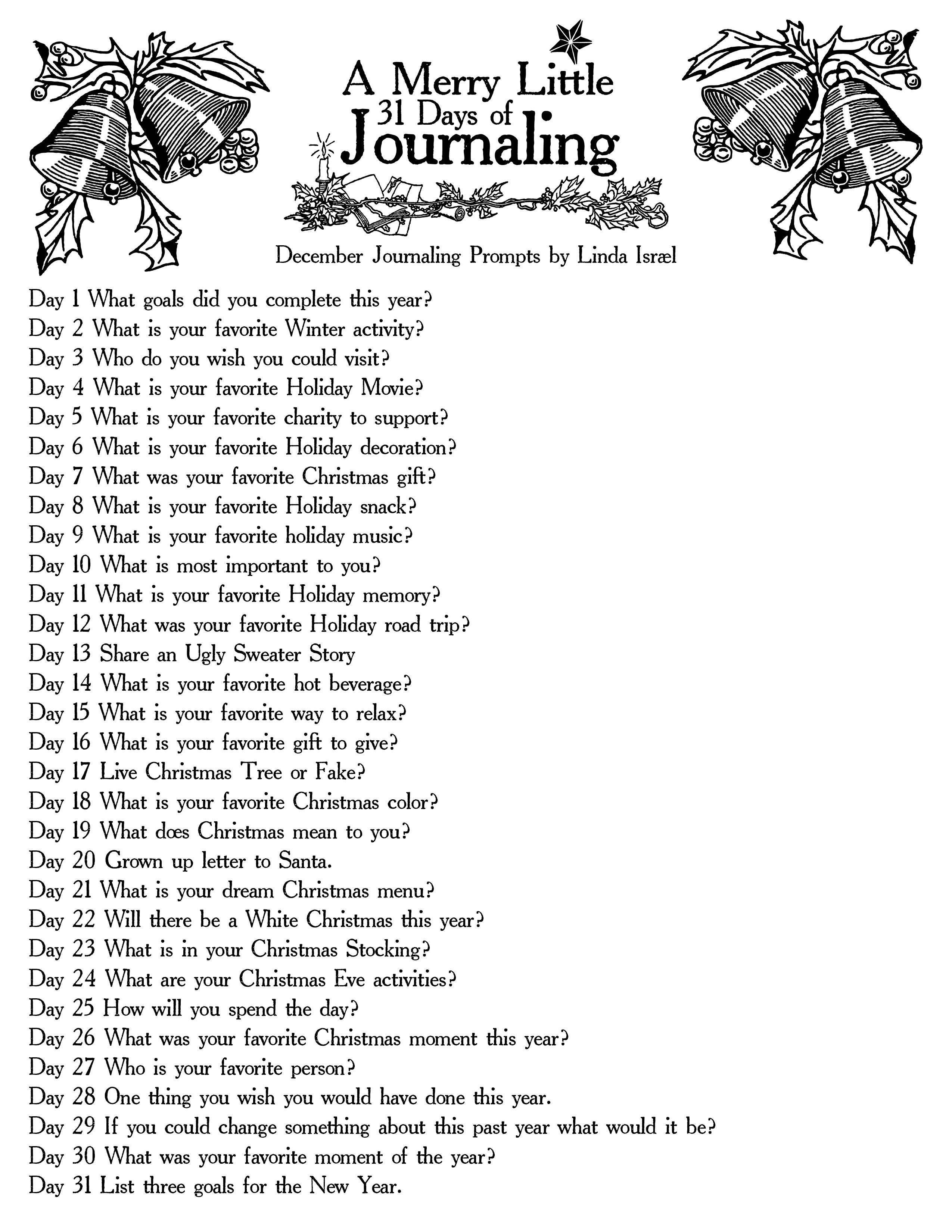 The A Merry Little 31 Days of Journaling prompts.