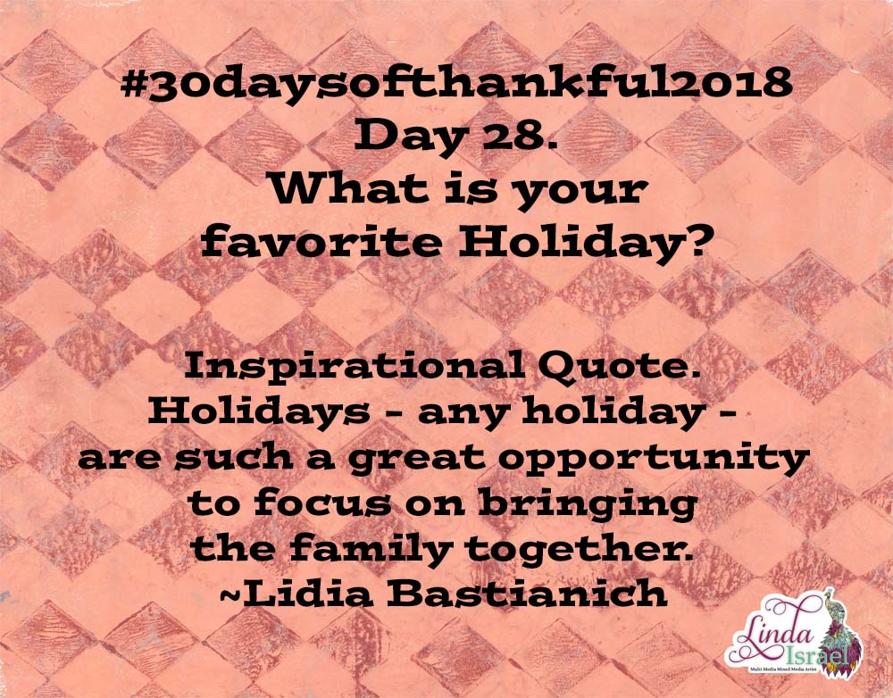 Day 28 Of 30 Days Of Thankful 2018 journal prompt. What is your favorite Holiday? There are so many holidays, but I think the ones where you spend time with family and friends are the best.