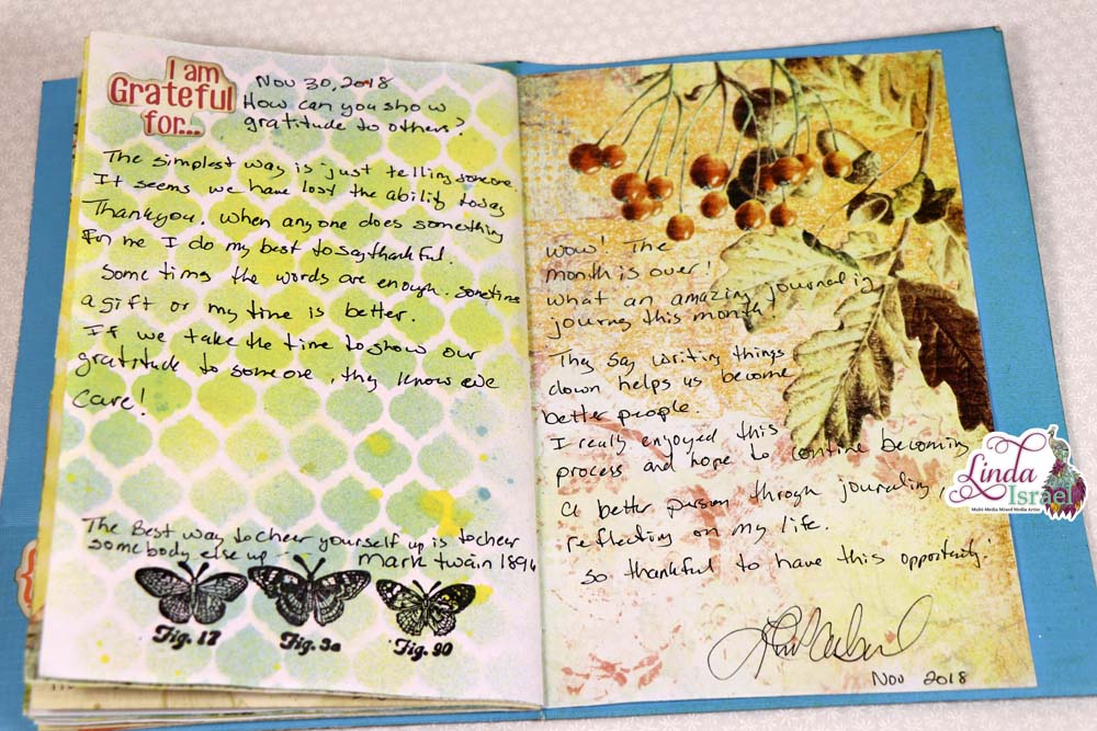 Flip through of my 30 Days Of Thankful 2018 Junk Journal after all the journaling.