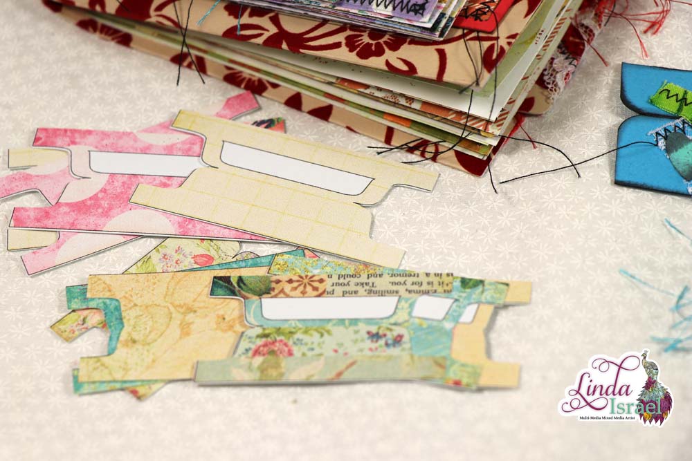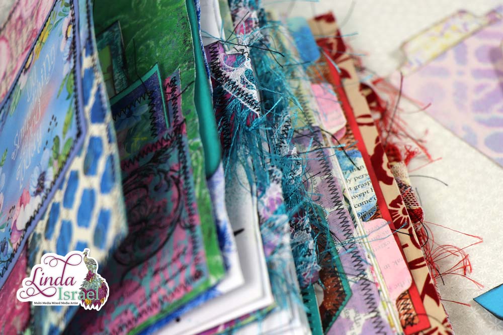 Adding a simple pocket to a book page looks pretty. I’m glad that I kept some scraps from a project I made a while back. The colors in the pieces all seemed to work well together and these were all from different creative sessions.