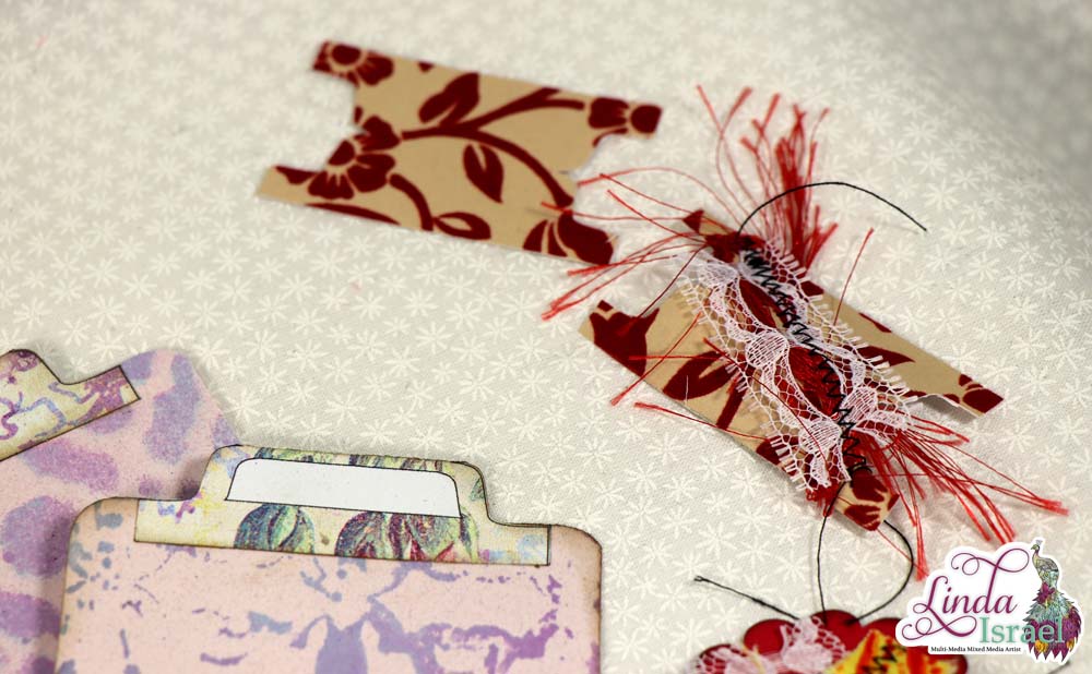 Layered pockets are fun to add in a journal. I used a strip of scrapbook paper to create a vertical pocket and then layered on of the All About Robins images as a horizontal pocket. The tag was a printed dictionary paper that was given to me and I just layered some scraps and an image from a dictionary on top.