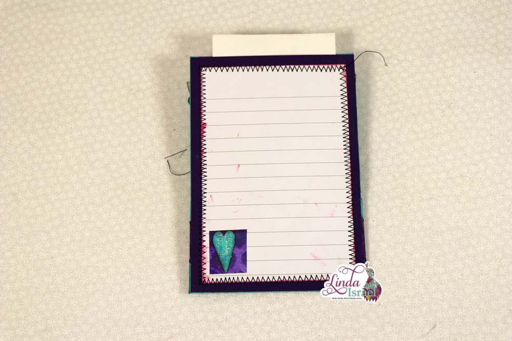 The base is made! Add some embellishments to the front, like the heart or words. Now load it up with journal cards, altered paperclips and even a little paper sack filled with goodies.