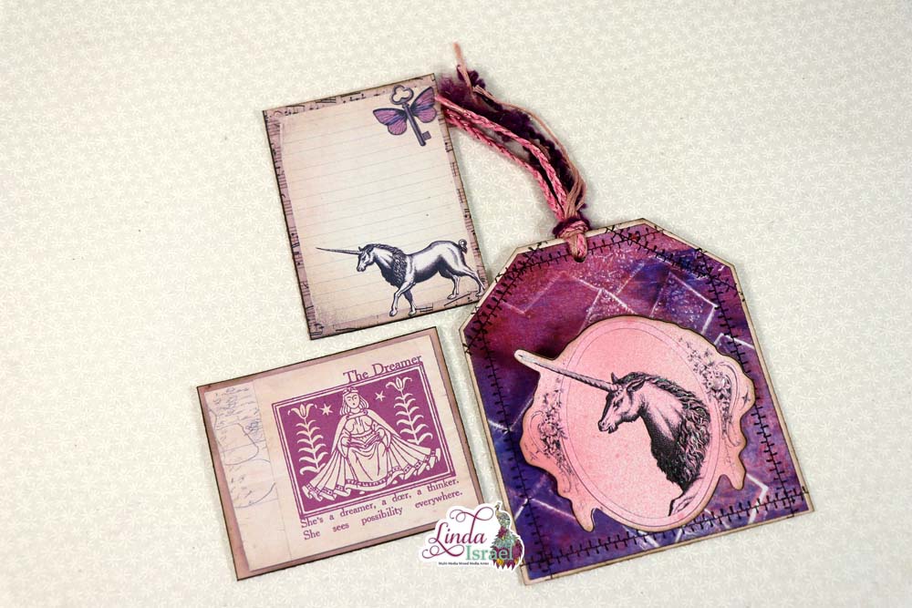 Exquisite Dreamer Tag Tutorial, Day 9 of 12 Days of Junk Journal Gift Ideas. Today I’m sharing how to make a tag using digital images, scraps, stamping, and Tattered Angels Glimmer Mists. Little tags like this make a great gift to add to a card or attach to a larger gift.