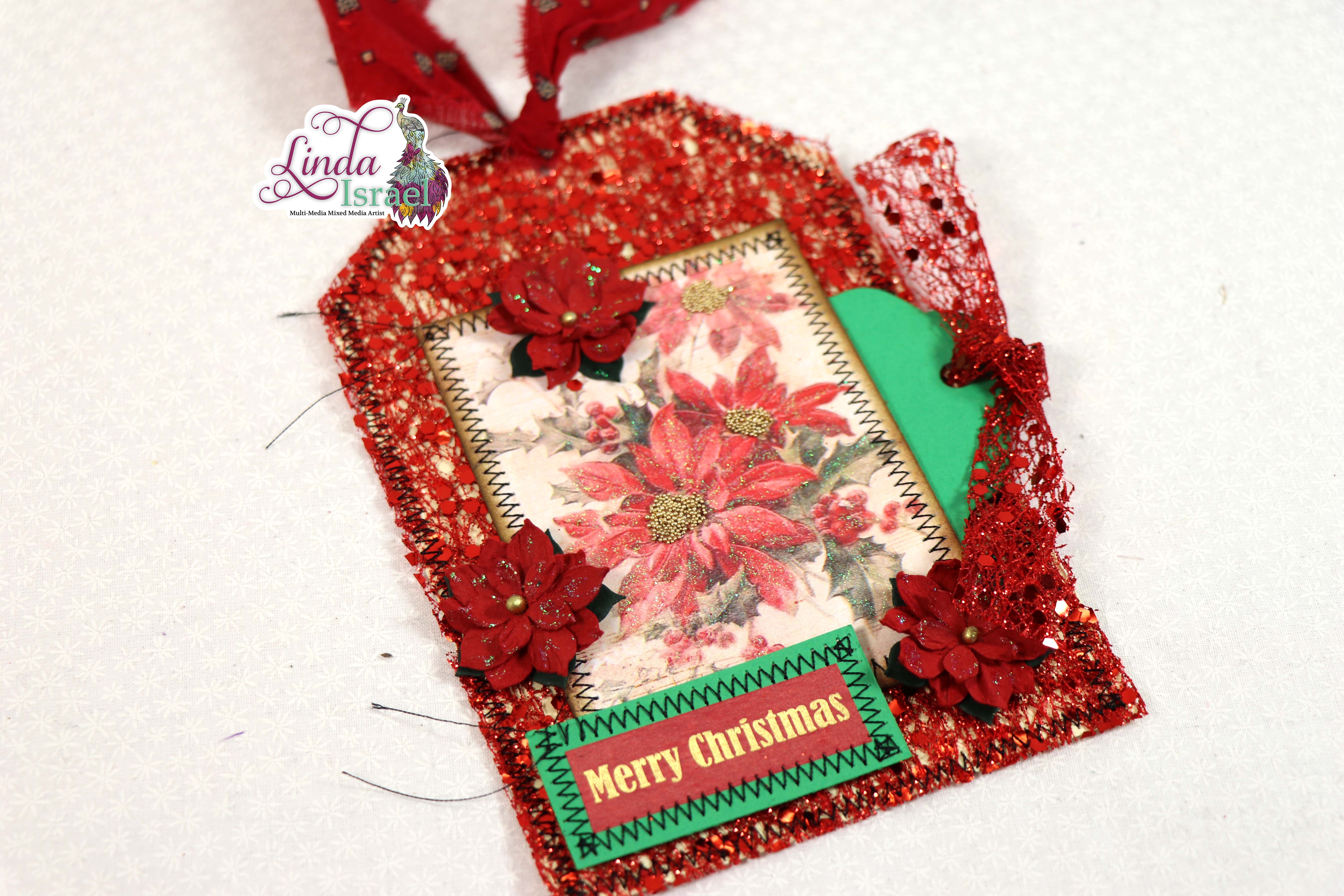 Sharing a Christmas Tag Tutorial for a swap. Using some Christmas Trim, Calico Collage Digital downloads, Best Glue Ever and more I share how to create a beautiful Christmas Tag and hopefully inspire you to be a #motivatedcreator.