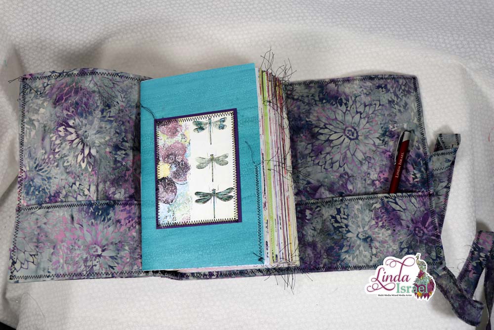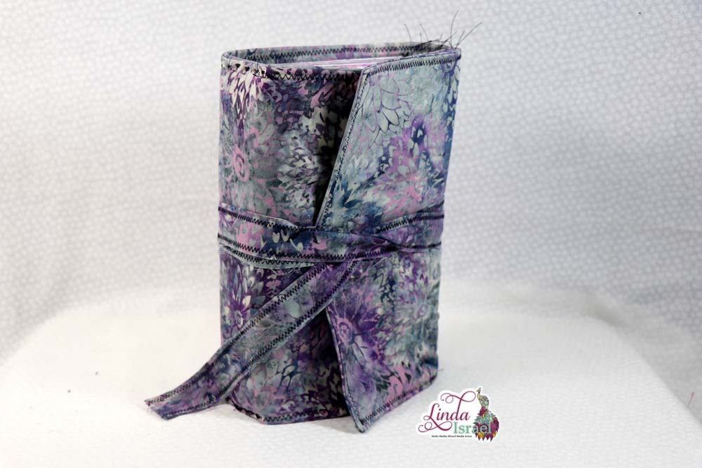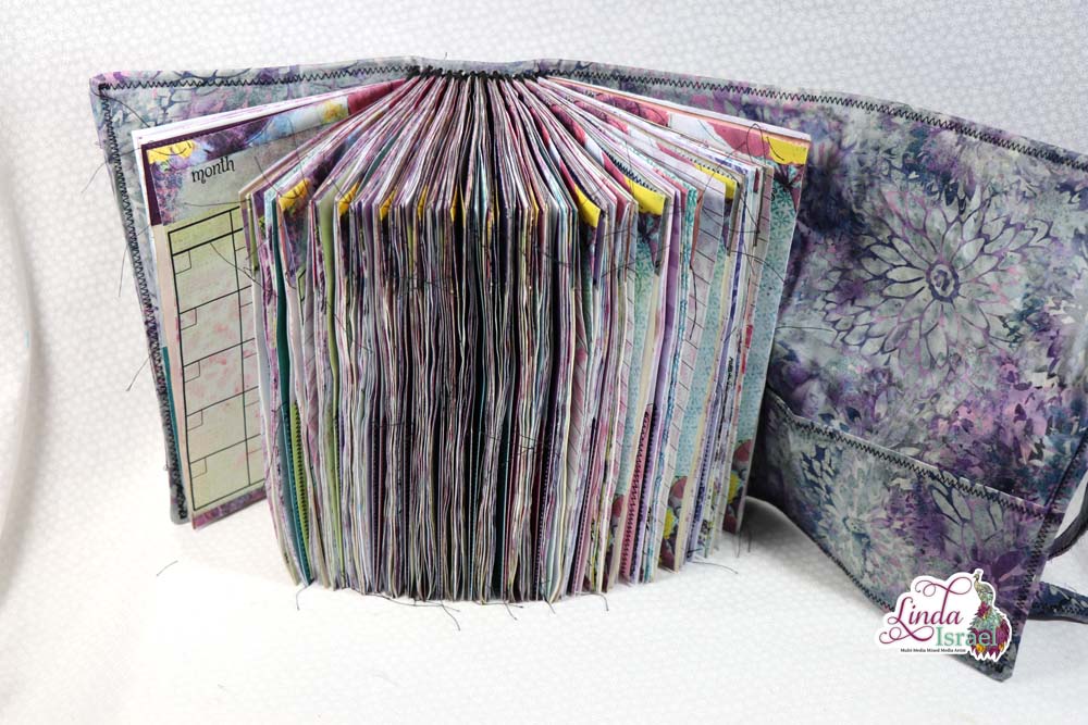 The journal has 12 inserts inside the cover each having 40 pages. This whole journal has 480 pages.  The cover is made of batik fabrics and features a pocket inside to hold items including a pen. Features a wrap around closure.
