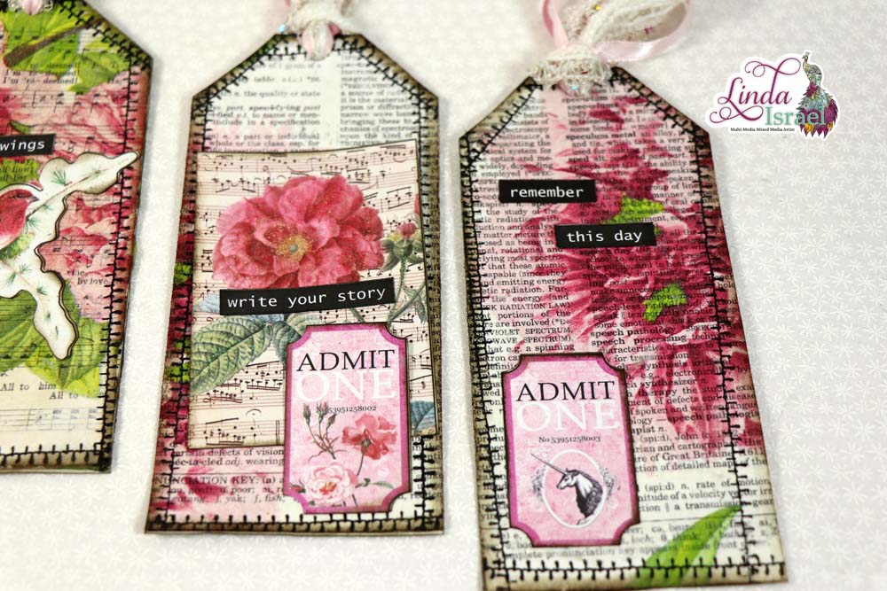 Sharing the Exquisite Dreamer Junk Mail Tag Tutorial today. Using an oversized postcard, book pages, Napkin and images from the Digital Journal Kit Exquisite Dreamer I show how to make fun tags. These tags can be used in a junk journal, as a gift, in a greeting card, as bookmarks and so much more.