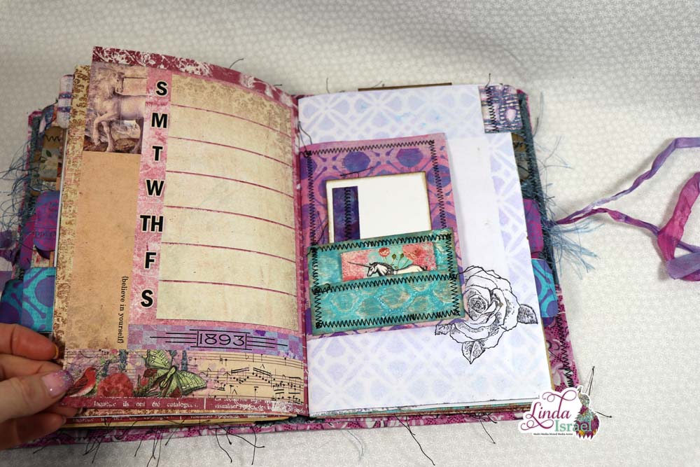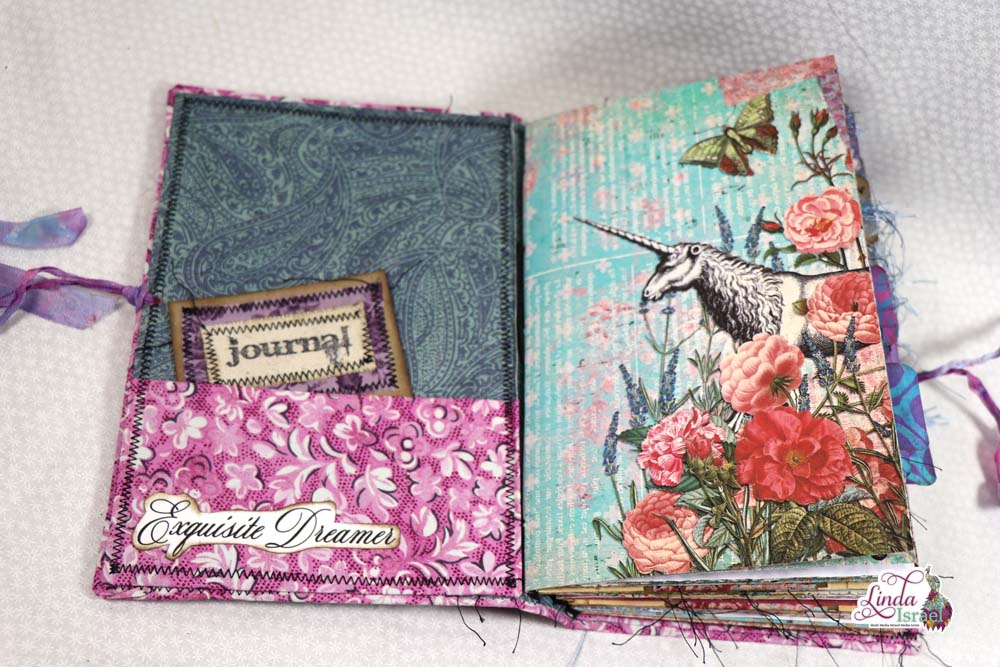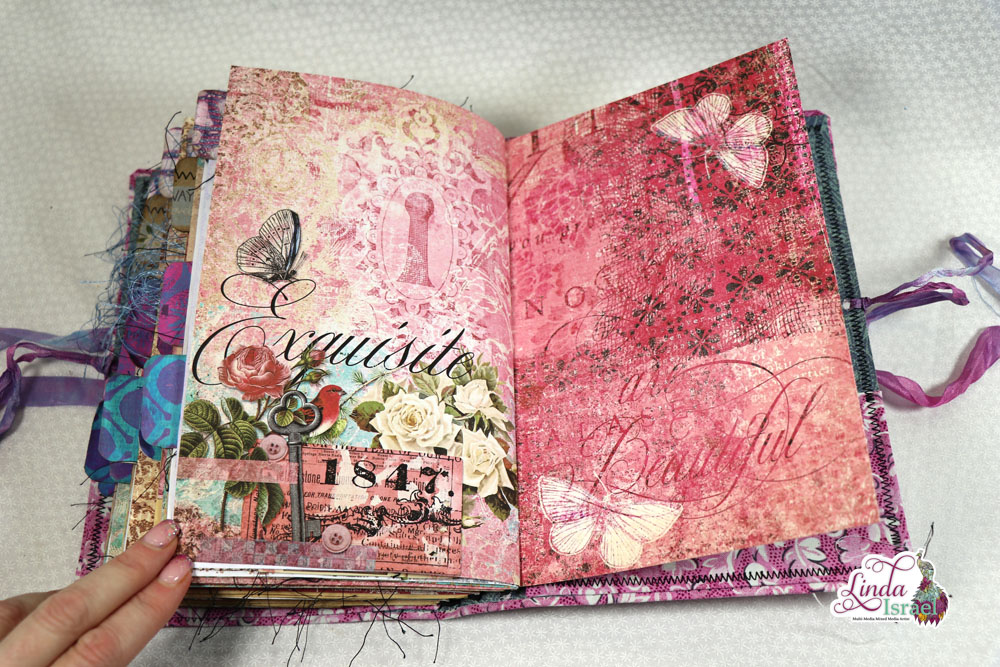 Exquisite Dreamer Flip Through of the journal made during the live stream on April 22, 2019 using the Calico Collage Digital Download Exquisite Dreamer, Tattered Angels Glimmer Mists, Bline Designs Stamps and much more.