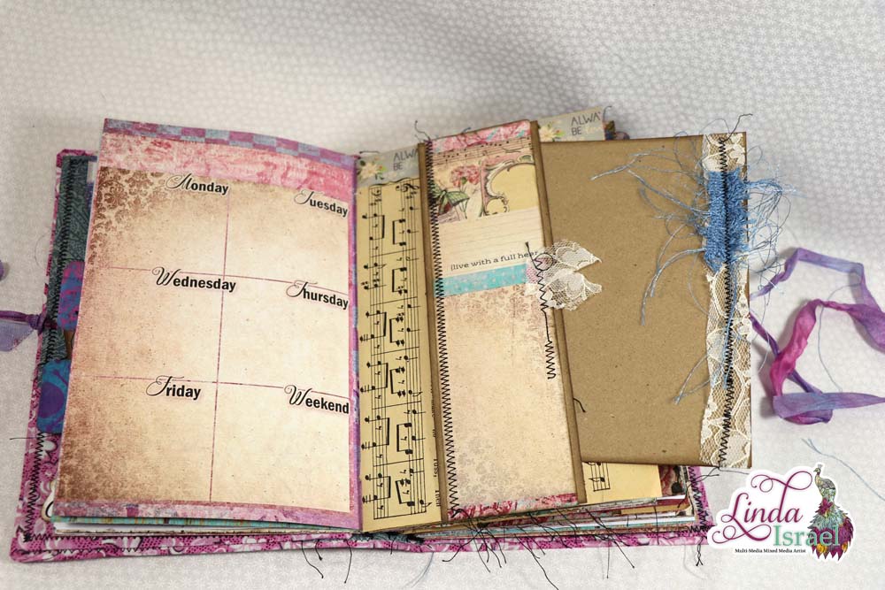 Get more out of the digital pages, by cutting it up for different elements. I cut up on of the pages and was able to decorate both sides of the sheet of music with journal space and pockets.