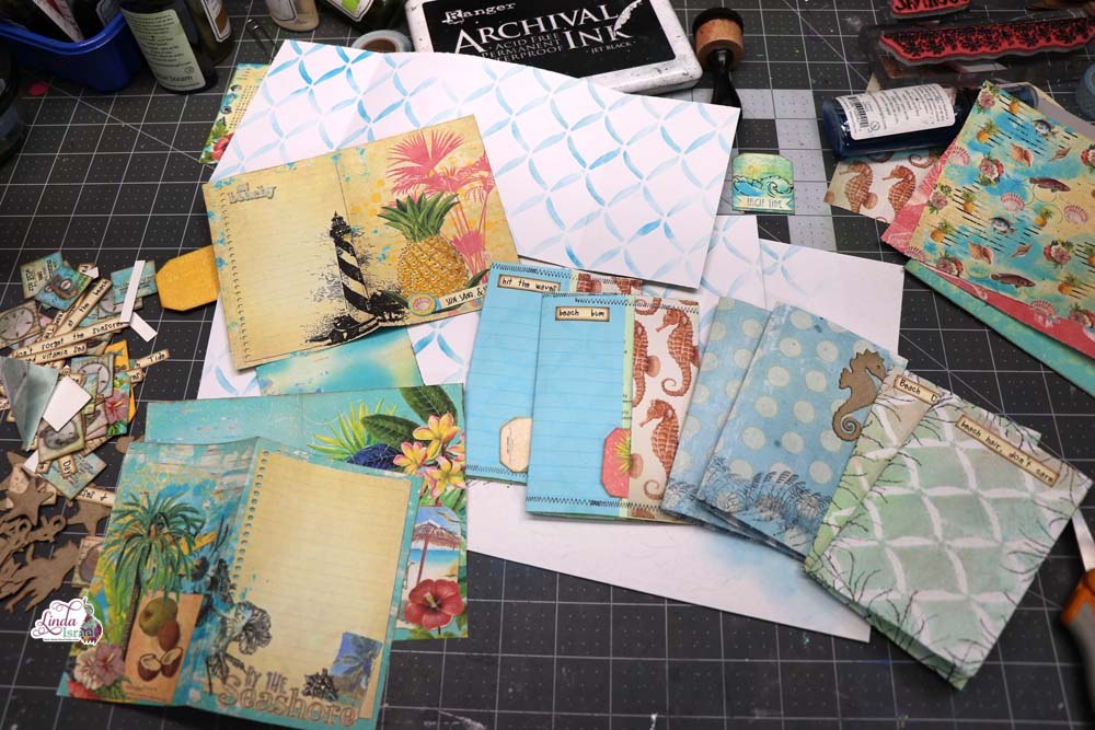 Since this is a live premier of the Mini Sea Breeze Junk Journal Tutorial I didn’t want to reveal too much in this blog post. So there will be a follow up blog to see the finished journal when I get back from vacation.