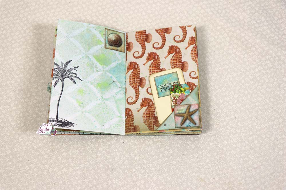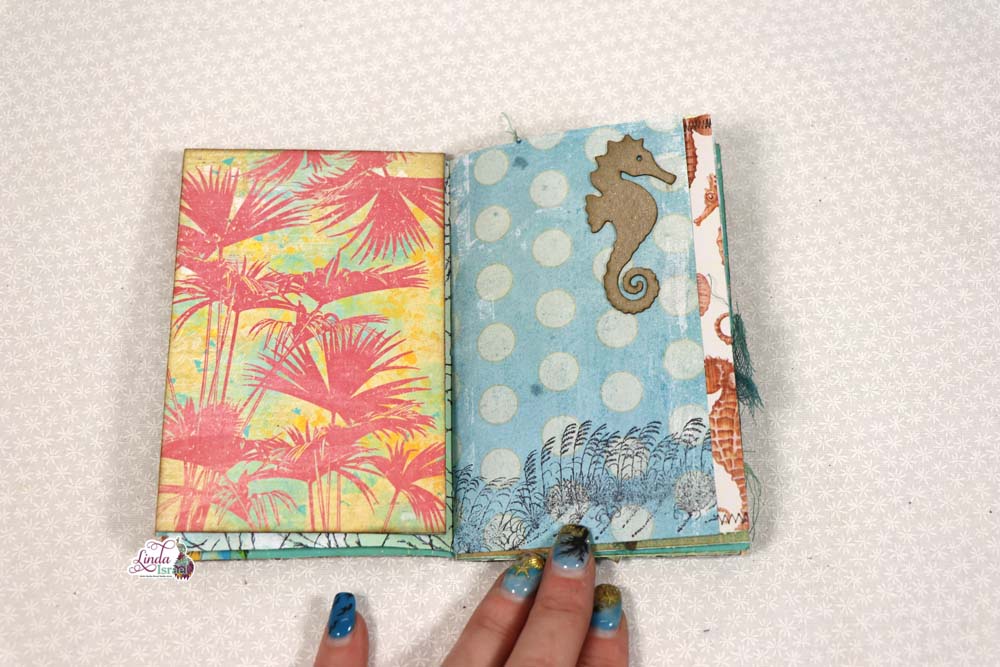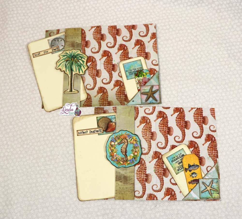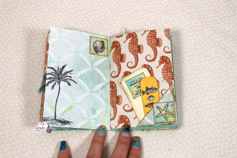 Watch the Mini Sea Breeze Junk Journal Tutorial Part one to see how the first pages were made.