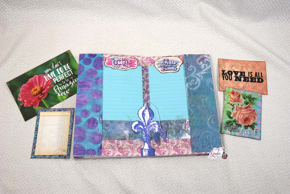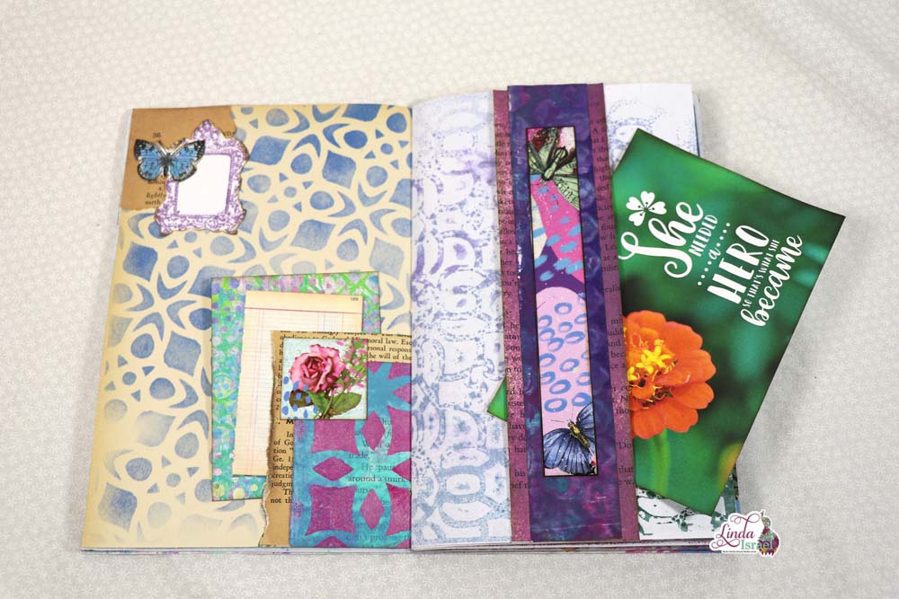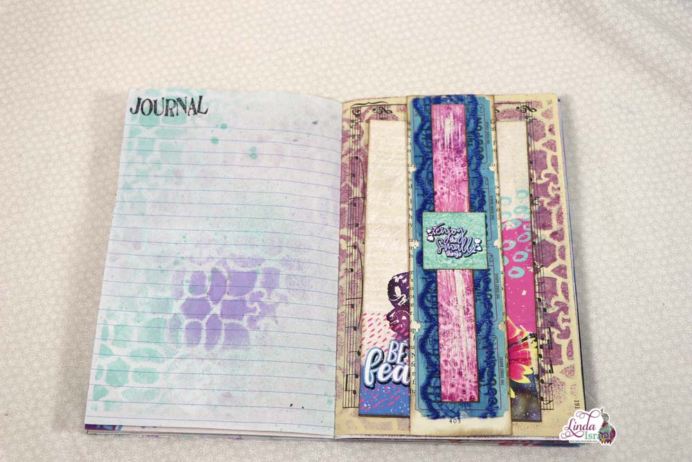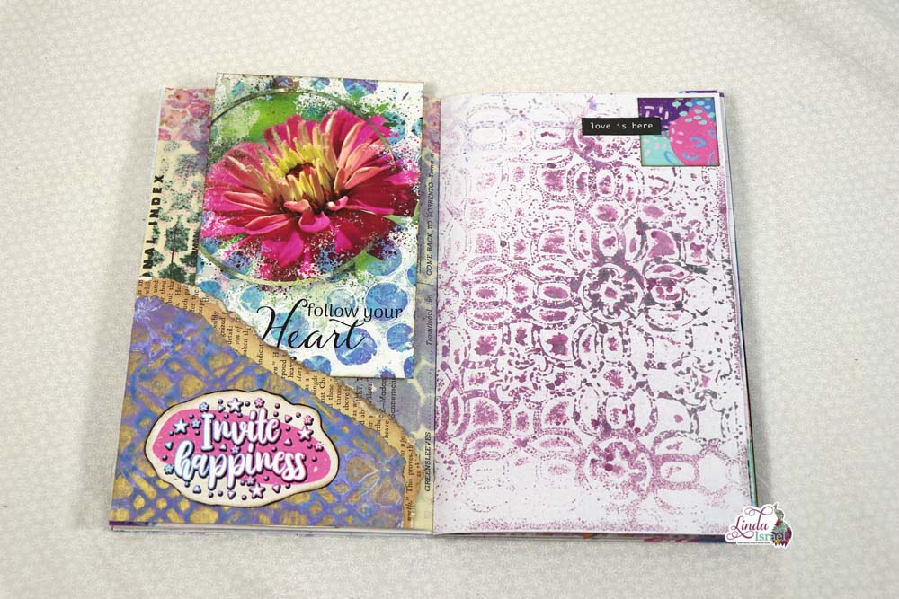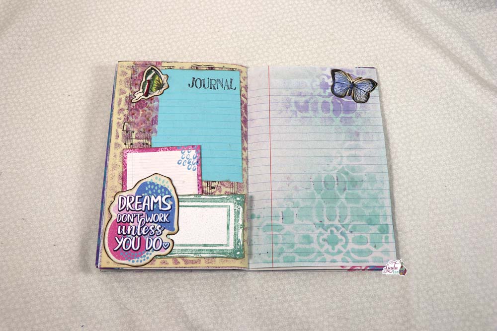 During the live stream, Linda created a junk journal from the new Positive Vibes subscription box. This flip through shows how she used rubber stamps, tattered angels glimmer mists, stencils and more to create this inspirational journal.