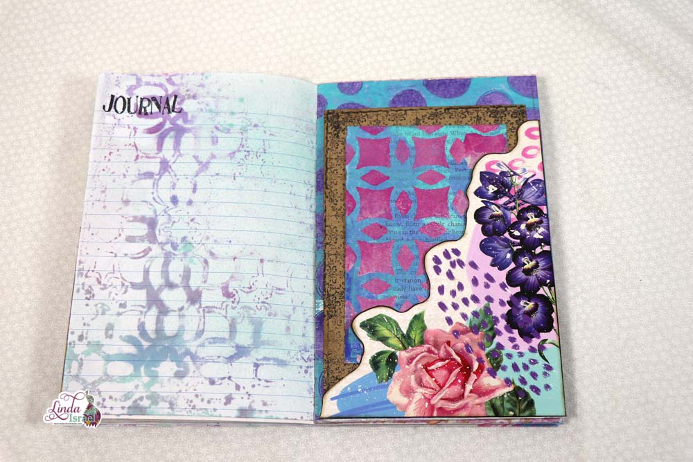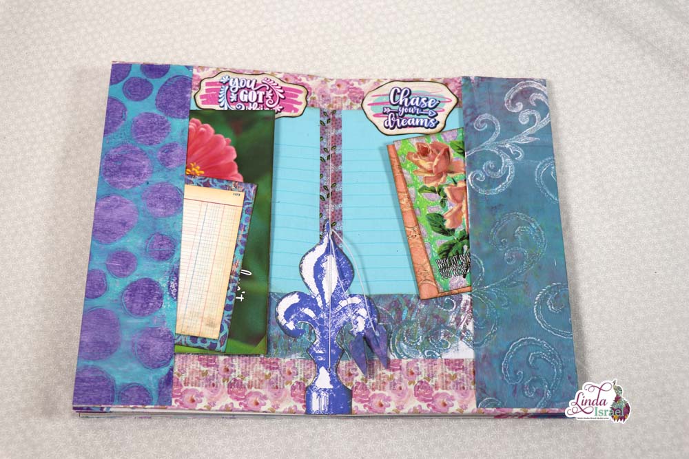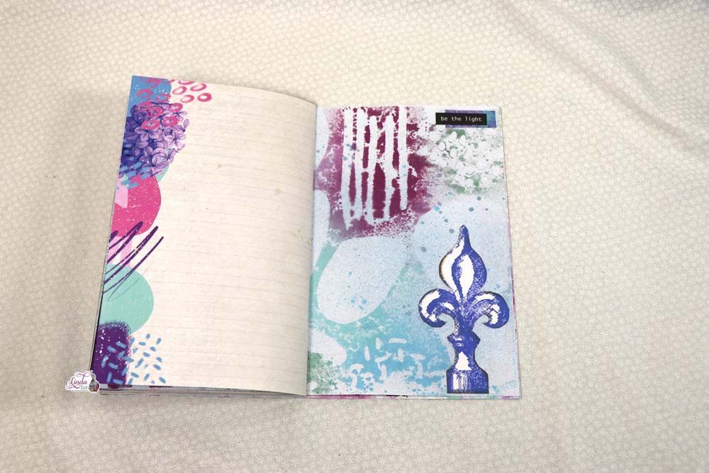 For the center of the journal, you can see the Fleur De Lis stamp, it is a great focal image for the page.