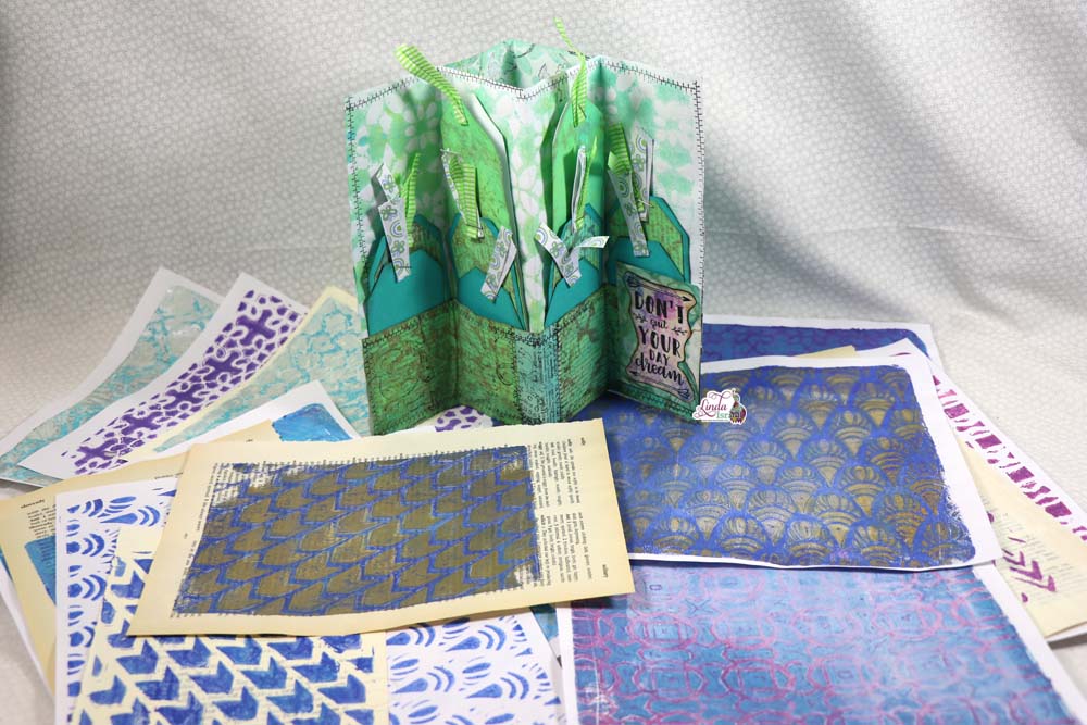 During the Live Creating a Music Themed Mixed Media Folio on November 27 I show how to create mixed media papers and then create a folio. Using book pages as a base for decorative papers is so easy and these turned out beautiful.