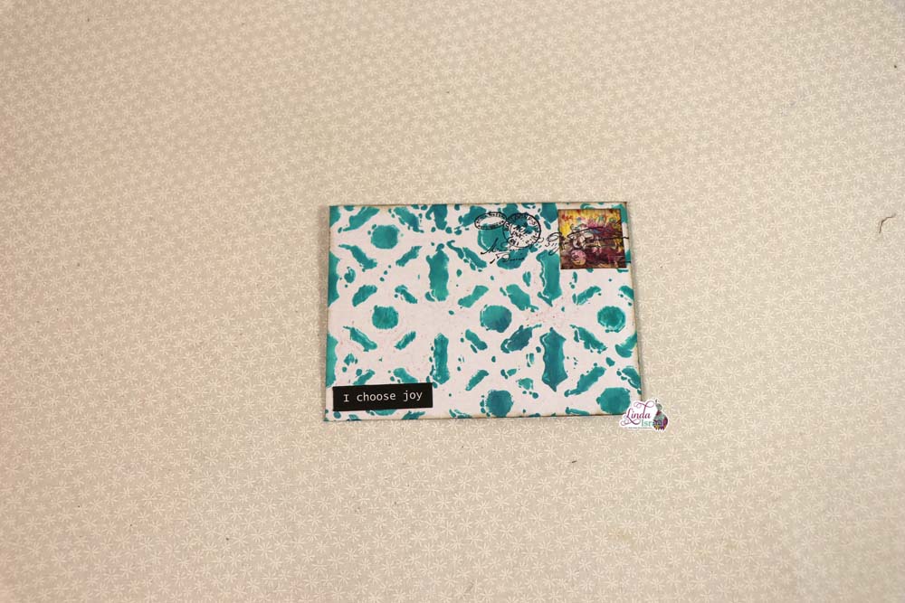 Add a word phrase on the front of the envelope. Could use the White Words on Black Inspirational – Printed, Digital or fussy cut words from junk mail or books.