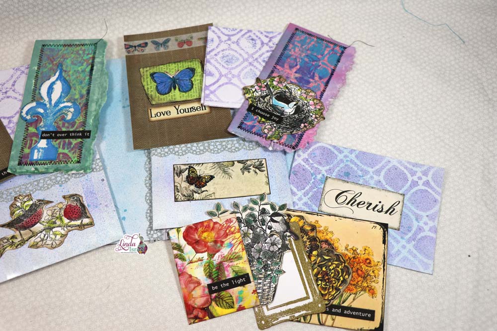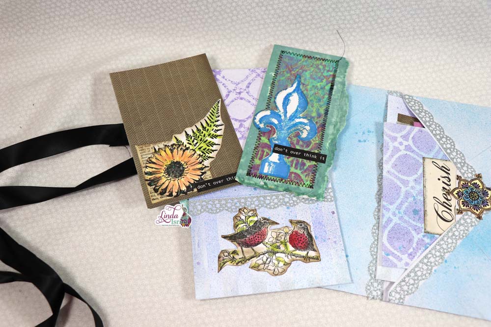 - Mixed Media Journal cards – used gel prints and rubber stamped images