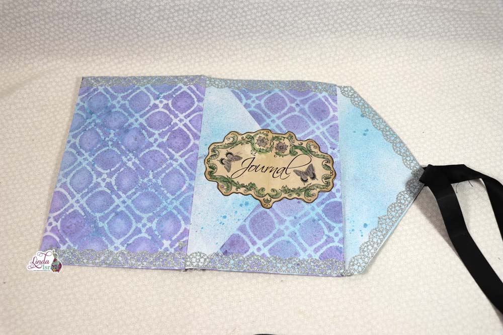 Select two envelopes that are the same size. Spray with Tattered Angels Glimmer Mists. Layer a stencil on top and spray again. Adhere the envelopes together using the flap of one envelope on to attach to the other envelope.