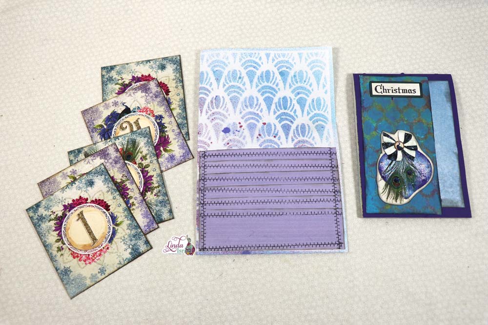 Stamp different elements like these that Linda shares. On the blank ticket, Ellis Stamp “Every Artist” Then on Ivory cardstock Linda used one of the stamps from the Birds Life Cube Stamps.