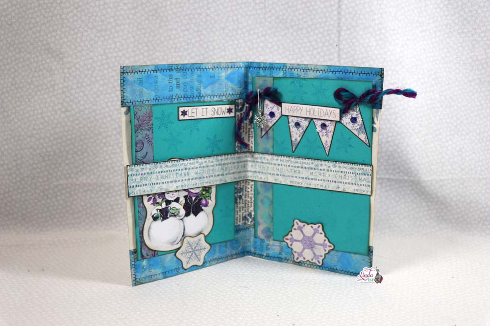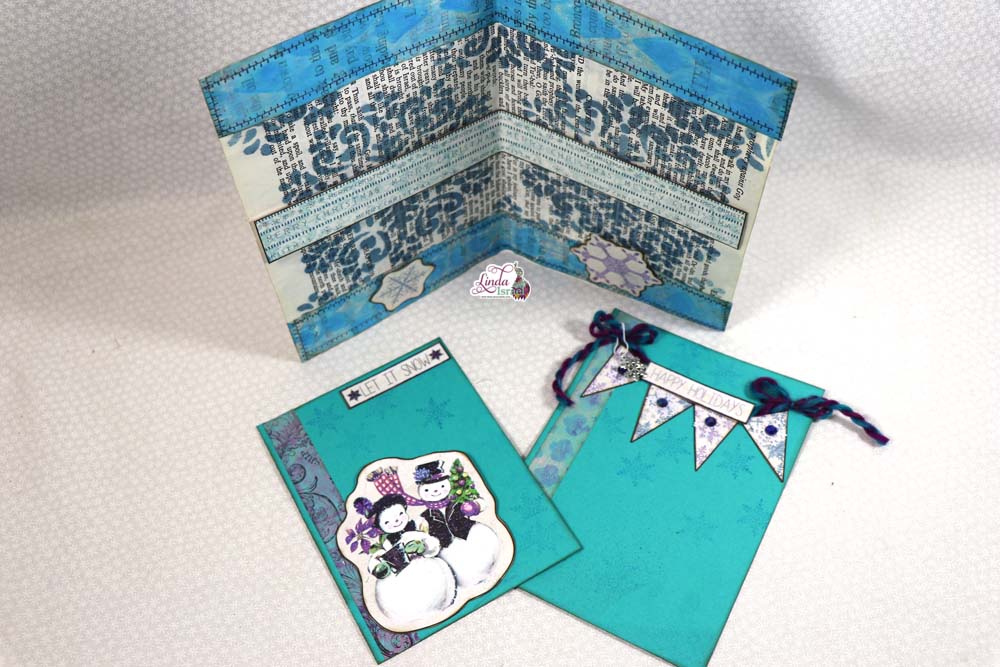 Here Linda shows how she created a belly band using digital add on pages, the journal card to the right was made with a gel print and elements from the A Christmas Peacock Subscription Box. The Banner Journal card to the right was a tutorial that was done on December 4th, go check it out!