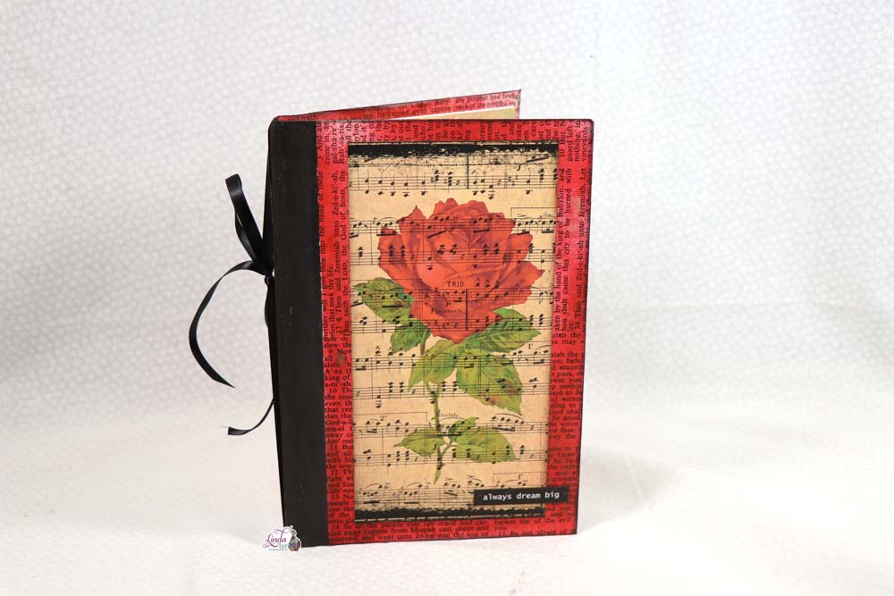 Preparing for the January Creative Prompts  Event that will be a featured event in the Friendly Junk Journal People Group, Linda shows how to create an Altered Composition Notebook that will be used during the month of January.