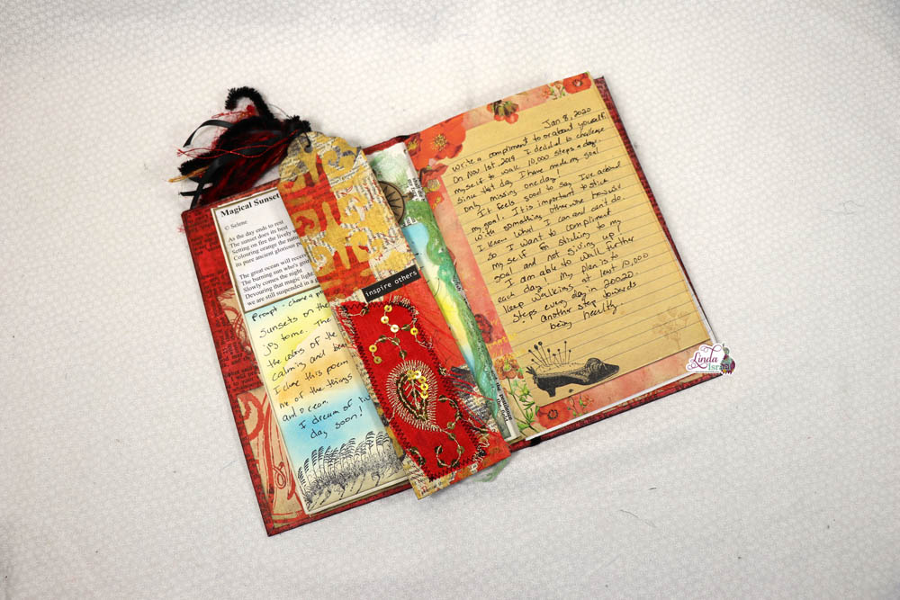 A year in the making, this Flip through of the Monochrome Junk Journal, Linda reviews the 3 signatures she created with the elements and the collaged fabric cover.