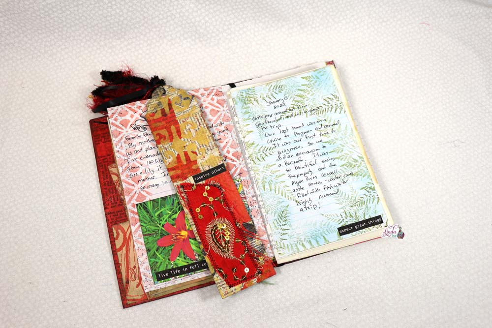 A year in the making, this Flip through of the Monochrome Junk Journal, Linda reviews the 3 signatures she created with the elements and the collaged fabric cover.