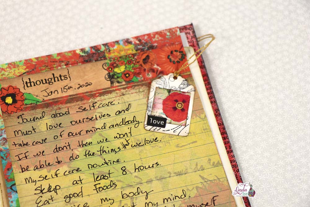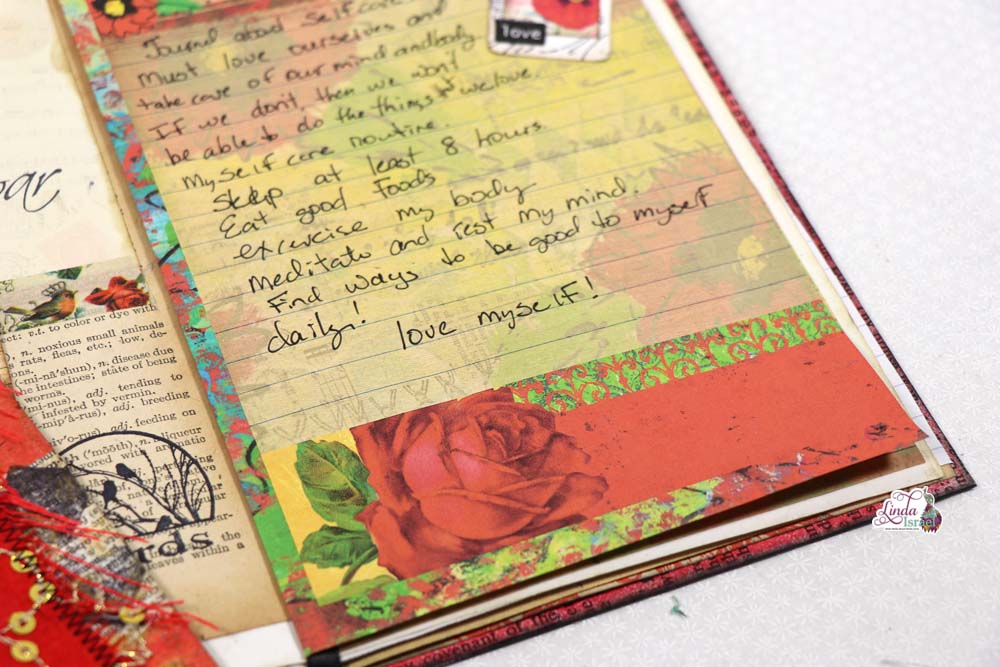 Using elements from the Radiant Red Digital Kit, Linda shares her ideas about Self Care and a simple way to decorate her journal page.