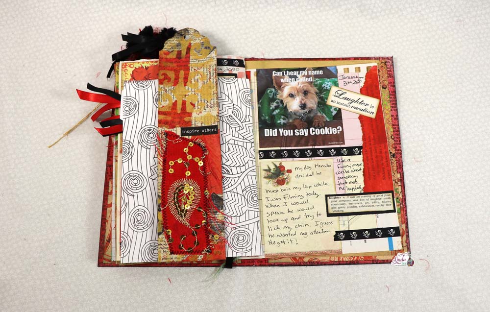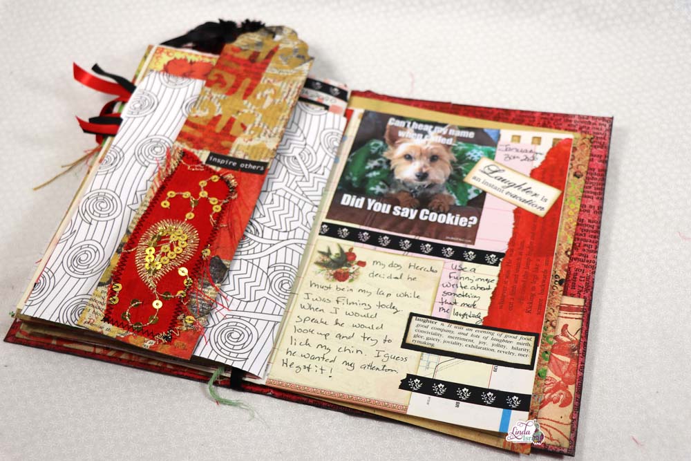A year in the making, this Flip through of the Monochrome Junk Journal, Linda reviews the 3 signatures she created with the elements and the collaged fabric cover.