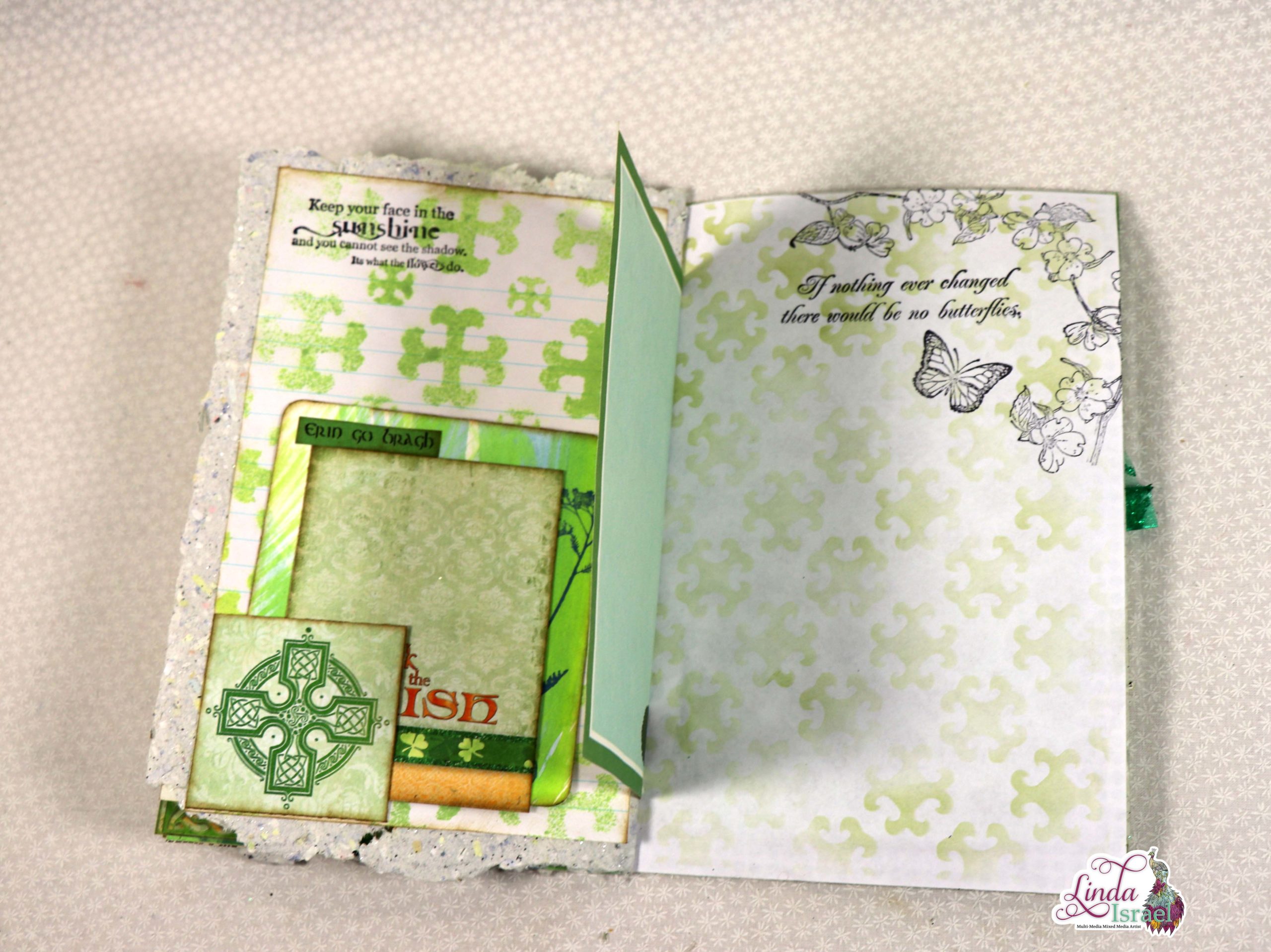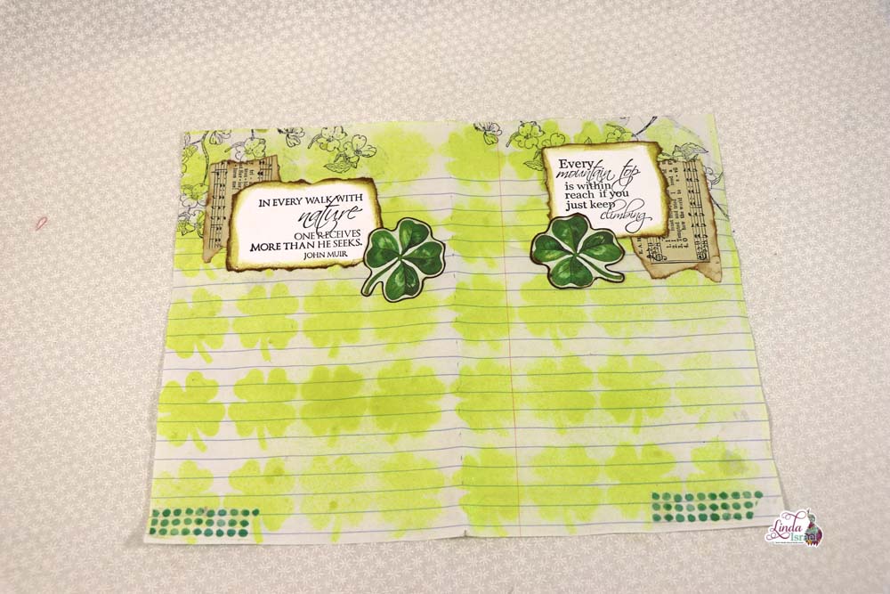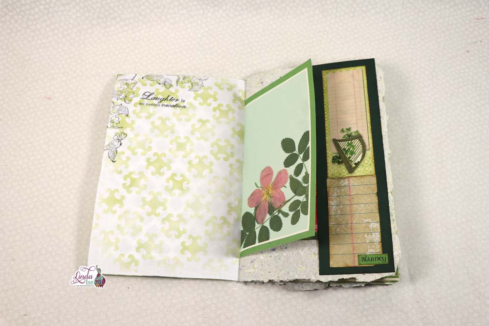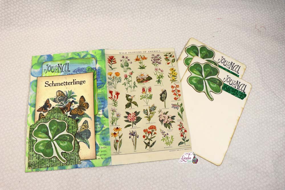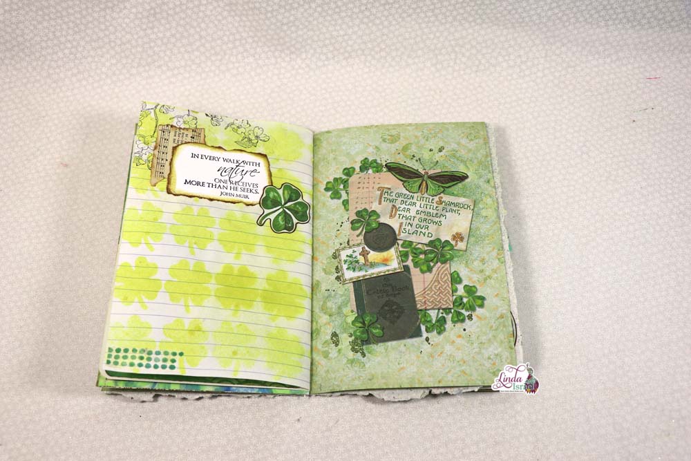 Here is the completed St. Patrick’s Day Journal that Linda created using the Lucky Little Clover Digital kit by Calico Collage. When you put together think about the aesthetics, look at what you think would look good as you flip through.