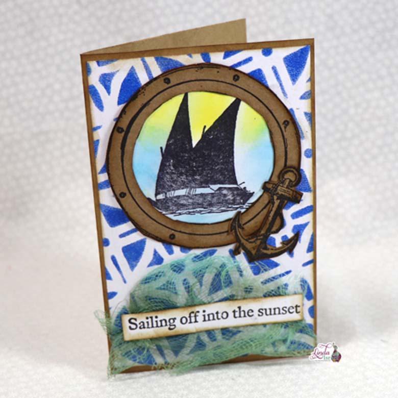 Got scrapbook paper that is too busy? Try attaching another paper on top to tone down the pattern and create additional writing space. Then accent the piece with a stamp, like the Tulip Twine that Linda used.