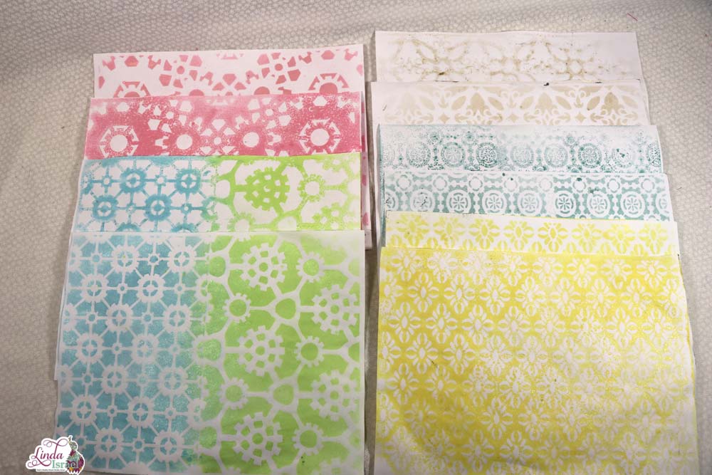 Creating these decorative papers has no limit! Stamping directly over the painted paper and then coloring in the images is another way to add patterns. Take a look at the supplies and tools you already have and see how you can make your own decorative papers.
