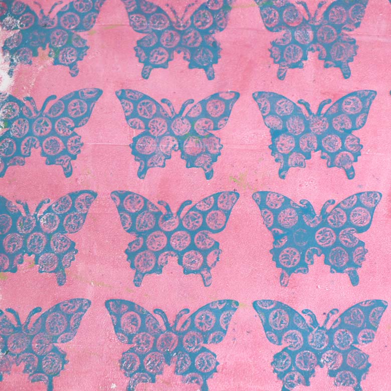 Butterfly Gel Print Tutorial. Super quick tutorial showing how to gel print using the Repeating Butterfly Stencil, bubble wrap and acrylic paint.