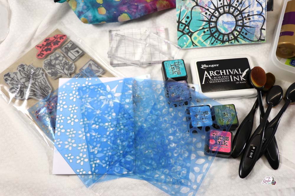 - The following distress ink minis: Peacock Feathers, Dusty Concord, Picked Raspberry, Salty Ocean, Forest Moss.