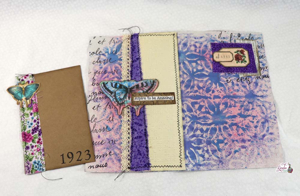 Lately I’ve been trying to use more fabric in my projects, mainly because I have a bunch and need to use it up!! lol Don’t be afraid to layer fabric over papers to create pockets, journal cards and more.
