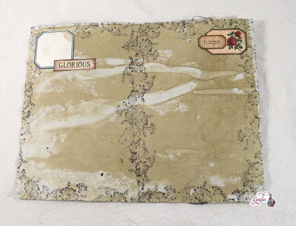 Stamping on the page while it is unembellished makes it so much easier. I like working on a full journal page and then binding in my journal. But if you have a ready made journal, just follow the steps to add to your current page or create a single page and paste it into your journal.